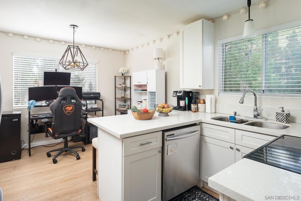 This unit will be available for rent soon. Meticulously cared for, upgraded upstairs corner unit, spacious floor plan with laminate wood floors throughout, upgraded kitchen with quartz countertops, stainless steel appliances, tucked-in stainless steel sink. Vaulted ceiling in the family room with access to the balcony overlooking the greenbelt area of the community. Spacious bedrooms with carpet flooring. Sewer: Sewer Connected Topography: LL
