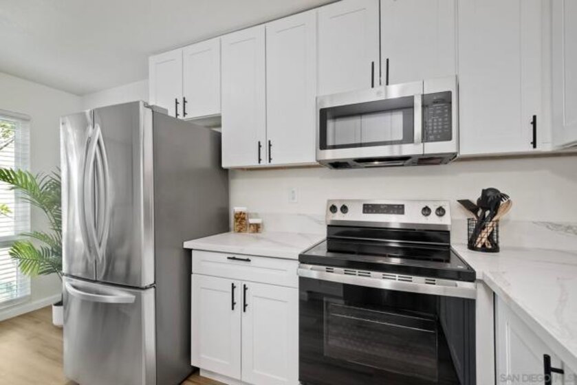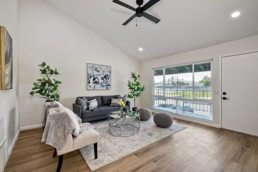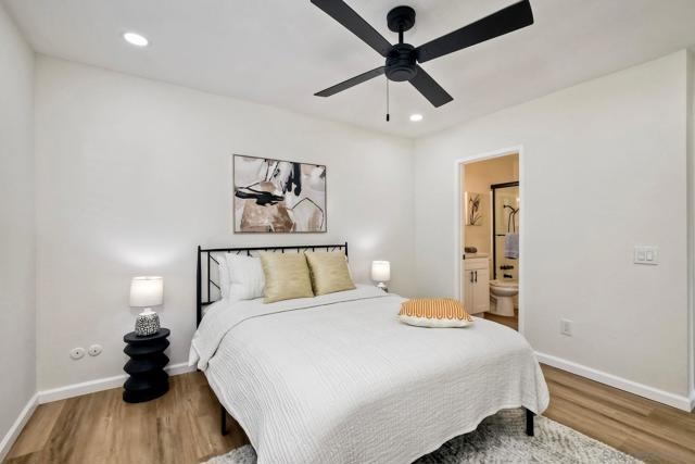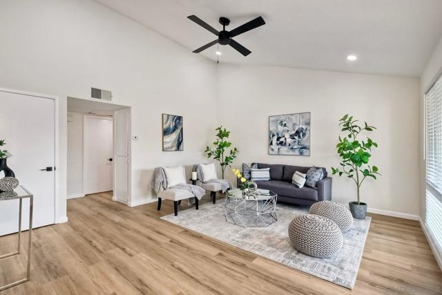SELLER FINANCING OFFERED. Welcome to this charming VA and FHA approved, completed renovated and move-in ready 2-bed, 1.5-bath condo in the desirable Pepperwood Meadows community of Escondido. Offering 905 sq ft of thoughtfully designed living space, this home features a bright, open floor plan with vaulted ceilings, luxury vinyl plank flooring, and brand new dual-pane windows. The updated kitchen boasts new countertops, stainless steel appliances, and ample cabinet storage, while the remodeled baths offer stylish modern finishes. Enjoy two spacious bedrooms, and 1.5 baths, plus a private balcony perfect for morning coffee or evening relaxation. Additional comforts include central A/C and community amenities such as a pool, spa, clubhouse, BBQ area, and landscaped greenbelts. HOA covers water, sewer, trash, and common area maintenance. Conveniently located near shopping, dining, parks, Oak Hill Elementary, and with easy access to the 78 and 15 freeways, this home offers both comfort and convenience. SELLER FINANCING OFFERED.