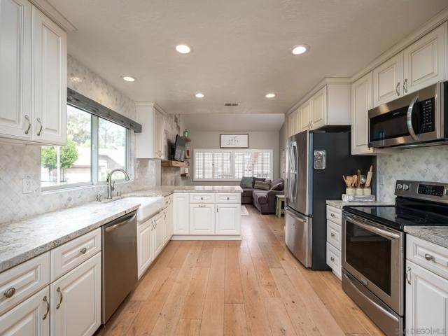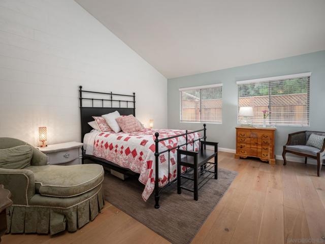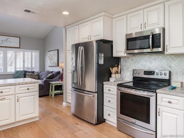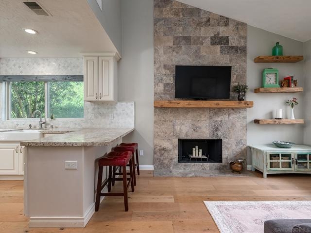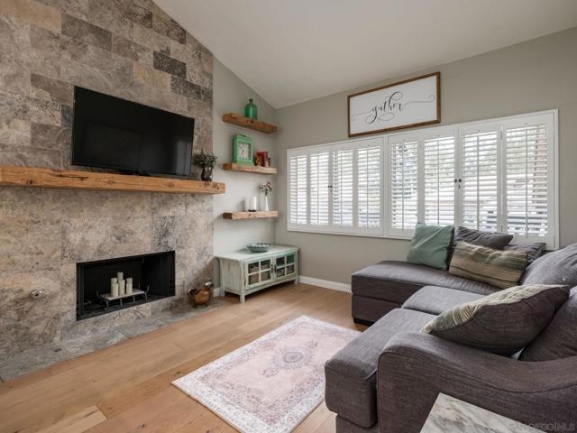 Back on market at no fault of property. This beautifully updated, single-level end-unit home is tucked away in the highly desirable Morningside Woods neighborhood. From the moment you step inside, you'll be captivated by the 20-foot ceilings and abundant natural light highlighting truly custom upgrades like satin granite counters, a full-height custom marble backsplash, real wood flooring, a natural stone fireplace, a custom reclaimed wood mantel and shelves, shutters, and new doors throughout. The gorgeously renovated kitchen is a dream, and you'll love the convenience of the private 2-car garage for ample storage and parking. With large skylights and with assumable solar panels, it's not just beautiful, it's smart living too! Imagine relaxing in the community pool and spa, enjoying the peaceful surroundings of this North Escondido gem. This is the perfect blend of comfort, privacy, and affordability – a true hidden find that won't last.