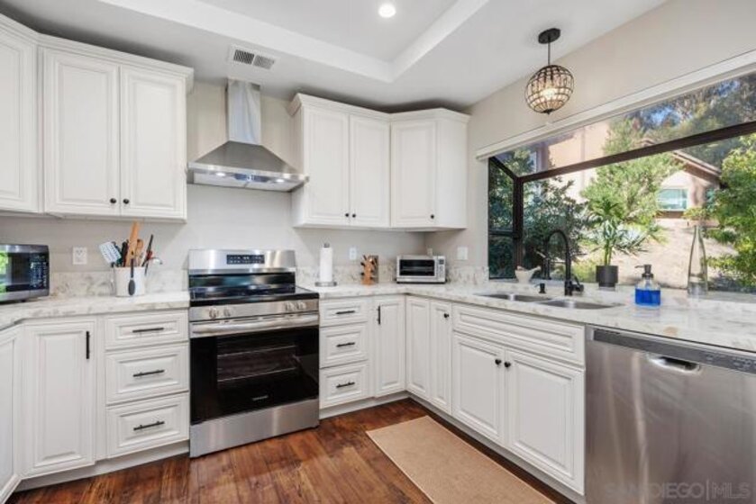 Welcome to Morningside Woods! This spacious 3 bedroom, 2 bath townhouse with an optional 4th bedroom offers comfort and flexibility in a highly desirable community. The updated kitchen opens seamlessly to the living and dining areas, highlighted by vaulted ceilings that create a bright, airy feel. Enjoy outdoor living with two private decks, perfect for relaxing or entertaining. Additional upgrades include new refrigerator and range, new carpets in the bedrooms, dual-pane windows (2020), a newer garage door and opener, and a new washer and dryer. Tucked away on a cul-de-sac with quick access to the 15 and 78 freeways, this home combines convenience and tranquility. Additional features include a 2-car garage and access to community amenities such as a pool, spa and beautifully maintained green spaces.