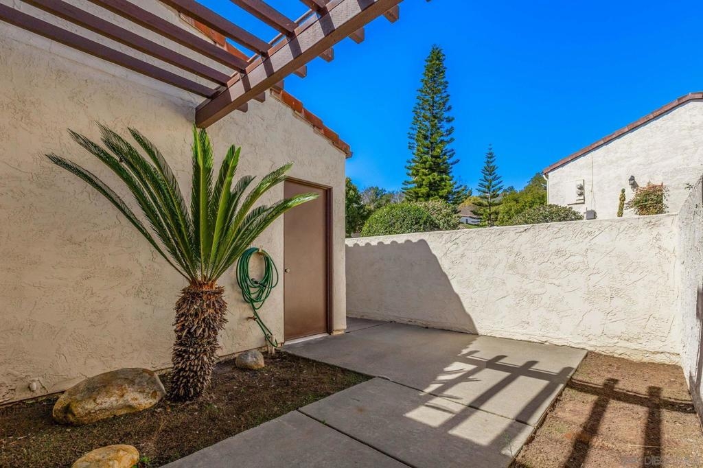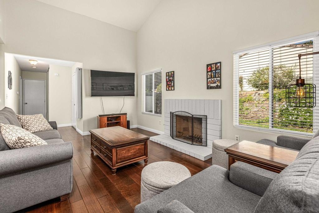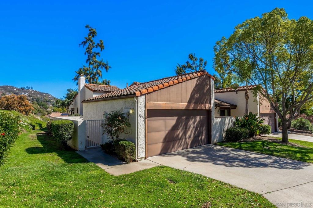 Fantastic location with views in beautiful Cameowood. Move in ready charmer is perfectly situated to take full advantage of the great views and cool afternoon breeze. Gorgeous wood floors, cozy fireplace in the living room, large kitchen, private courtyard in front and great patio in the back for great outdoor living space. Dual pane vinyl windows throughout, whole house fan excellent for quickly cooling off home, single story with only one common wall lives like a detached home. 2 car garage with driveway space for two cars also. San Marcos school district, close to all, easy freeway access, nearby shopping, dining, schools, & just steps away to walking trails throughout the community. HOA includes a community pool, exterior building maintenance, roof maintenance, landscaping and common area maintenance.