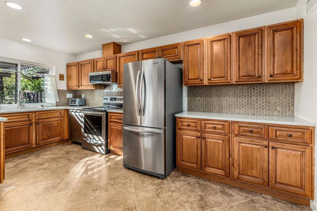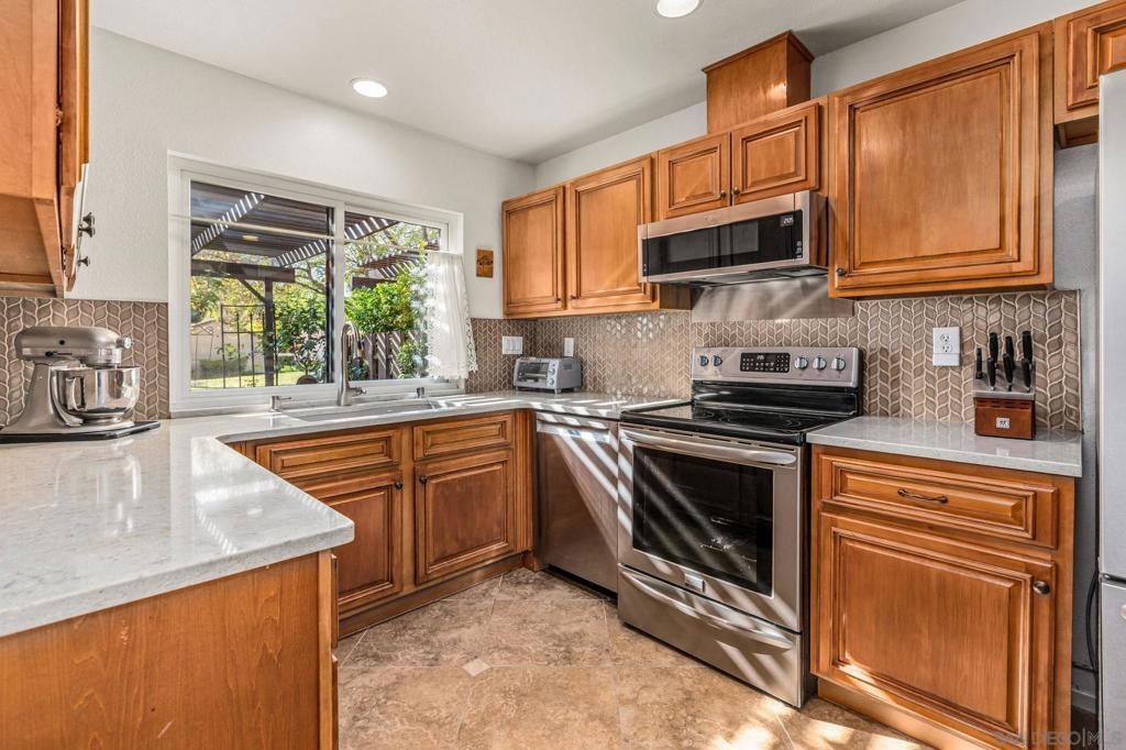 Fabulous Turn Key, 1 story home, in a great neighborhood. This highly upgraded cul-de-sac home, with only 1 common wall, lives like a detached home. Fully remodeled gourmet kitchen, with quartz counter tops, easy close doors & drawers, stainless steel appliances, plenty of counter space & storage. Vaulted ceilings & cozy fireplace in the extra large living room. Plenty of natural light throughout. Third bedroom is currently set up as an office. Both bathrooms have been tastefully remodeled. Wonderful covered back patio perfectly situated to take advantage of the afternoon breeze. Dual pane Anderson windows throughout, new water heater, furnace & duct work 7 years new, all interior doors have been updated, separate laundry room, EV charging station in garage. Short walk to the community pool. Close to all, easy freeway access, nearby shopping, dining, schools, & just steps away to walking trails throughout the community.