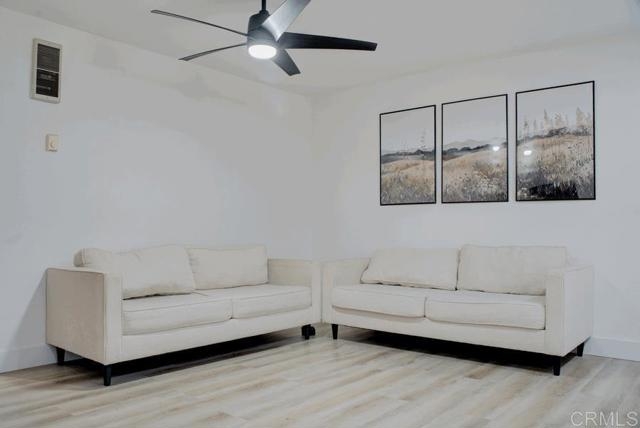 Move-in ready and on the first level, newer flooring throughout, stainless Steele appliances, recently painted, ceiling fans, wall AC, remodeled bathroom, master has a walk-in closet, small patio between unit and garage, direct access from private garage to unit, 1 extra parking, proximity to community pool, water is included in the HOA fee, and close proximity to shopping and schools.