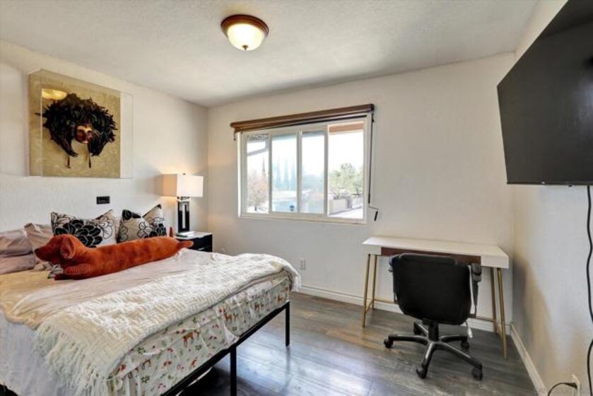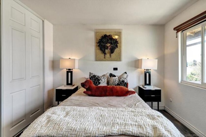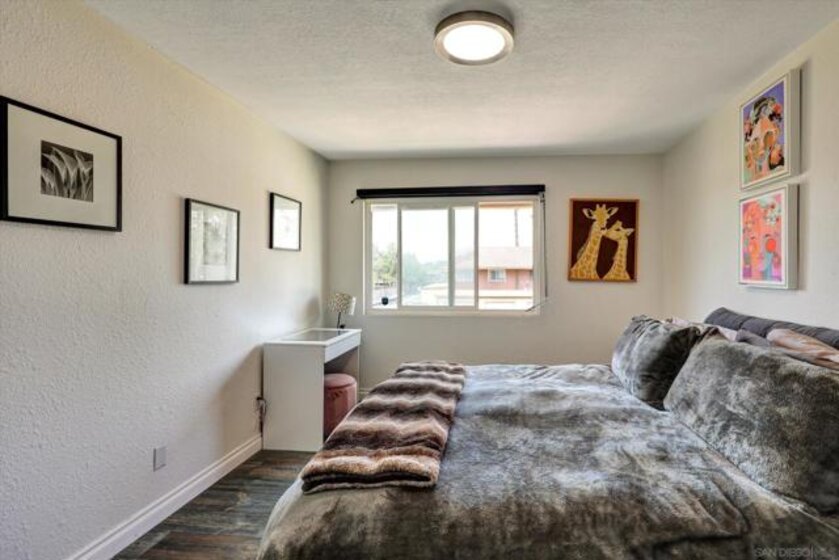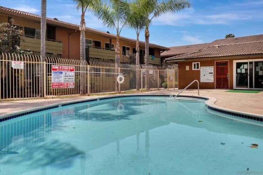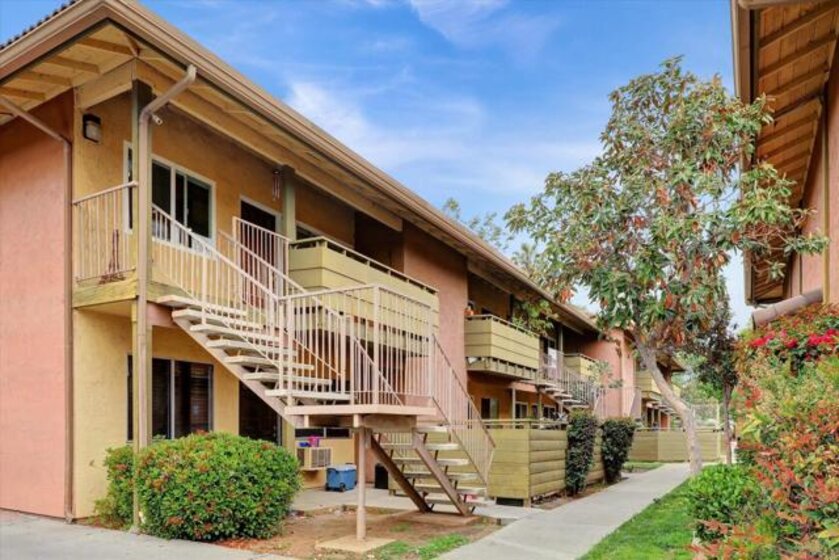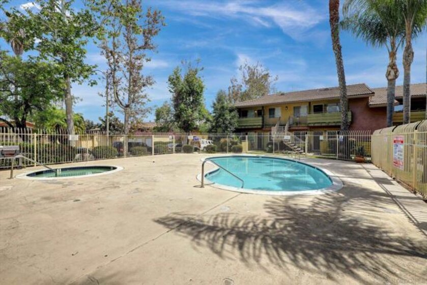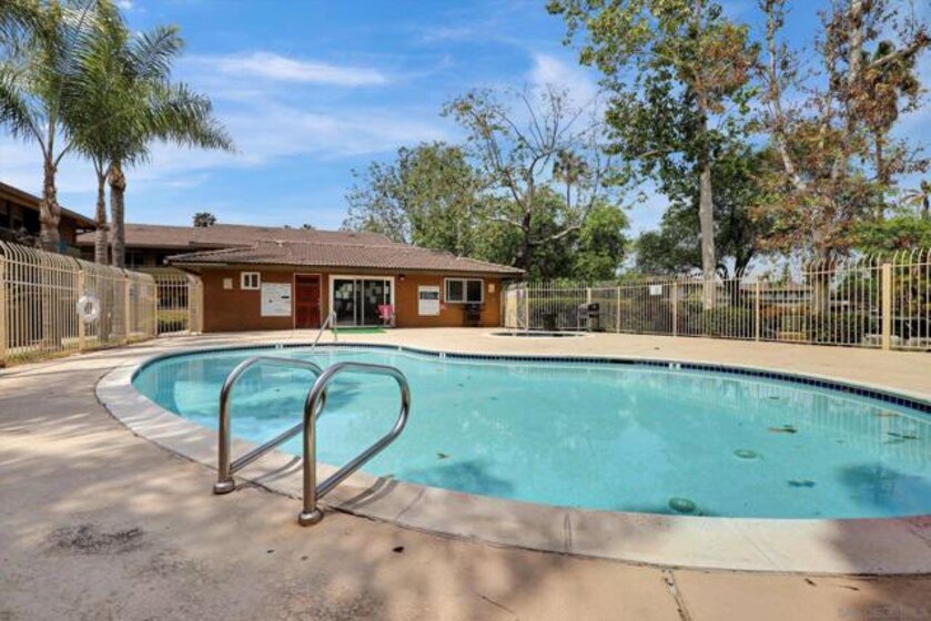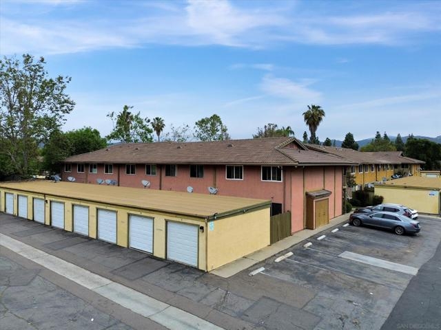 Investor Alert & First-Time Buyer Opportunity! LOWEST-PRICED 2-BEDROOM CONDO WITH GARAGE in the entire complex! Check out the 3-D Matterport! Discover exceptional value in this tastefully upgraded 2-bedroom, 1-bath upper-level condo located in a desirable, well-maintained Escondido community. This move-in ready home offers private stairs to a covered patio and entry, creating a welcoming and private space to unwind. Inside, enjoy travertine, wood, and laminate flooring, classic dark wood cabinetry, and white tile countertops that provide a clean and timeless aesthetic. The spacious primary bedroom includes a walk-in closet, while both bedrooms feature generous storage. Additional features include dual-pane windows, wall A/C, and access to a sparkling community pool—perfect for warm San Diego days. The home also includes a detached 1-car garage, and the HOA covers water, keeping ownership costs low. With its prime location near schools, shopping, dining, and major freeways, this condo offers both comfort and investment potential. Whether you’re looking to start building equity or add to your portfolio, this is the best-priced opportunity in the area. Check out the photos and location today and see why it is one of Escondido’s smartest buys!
