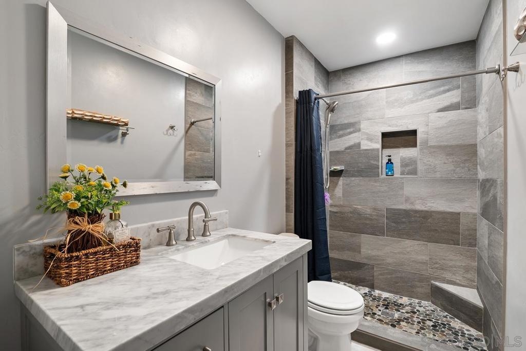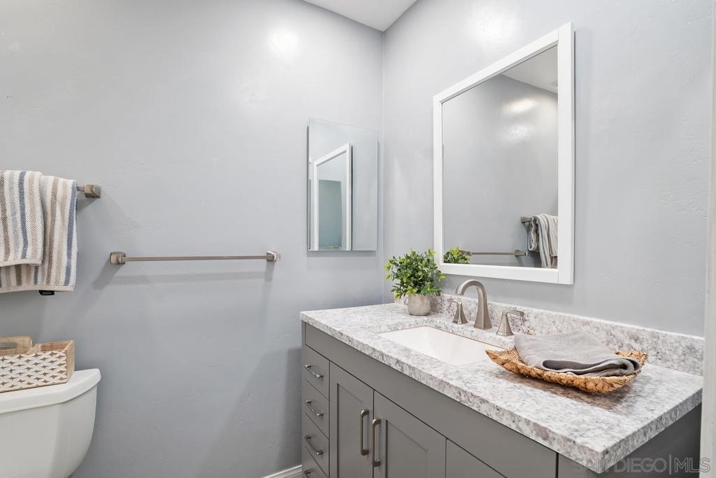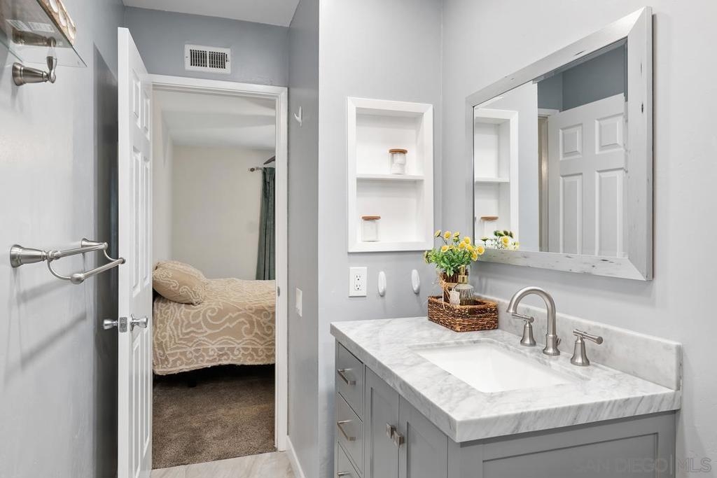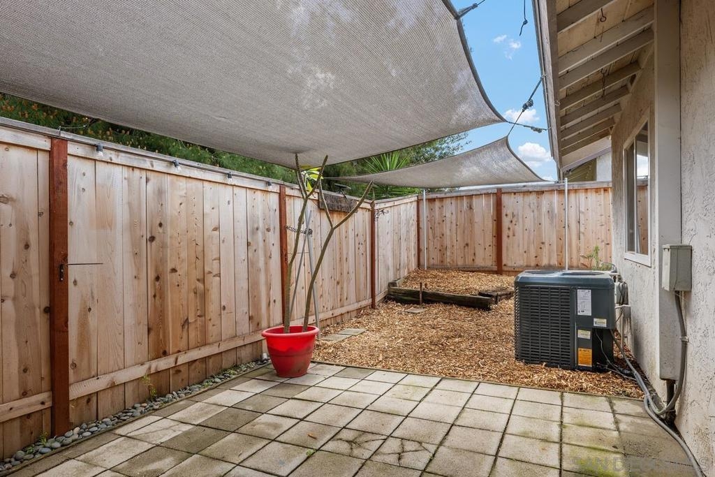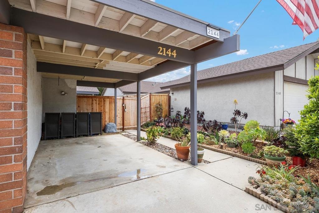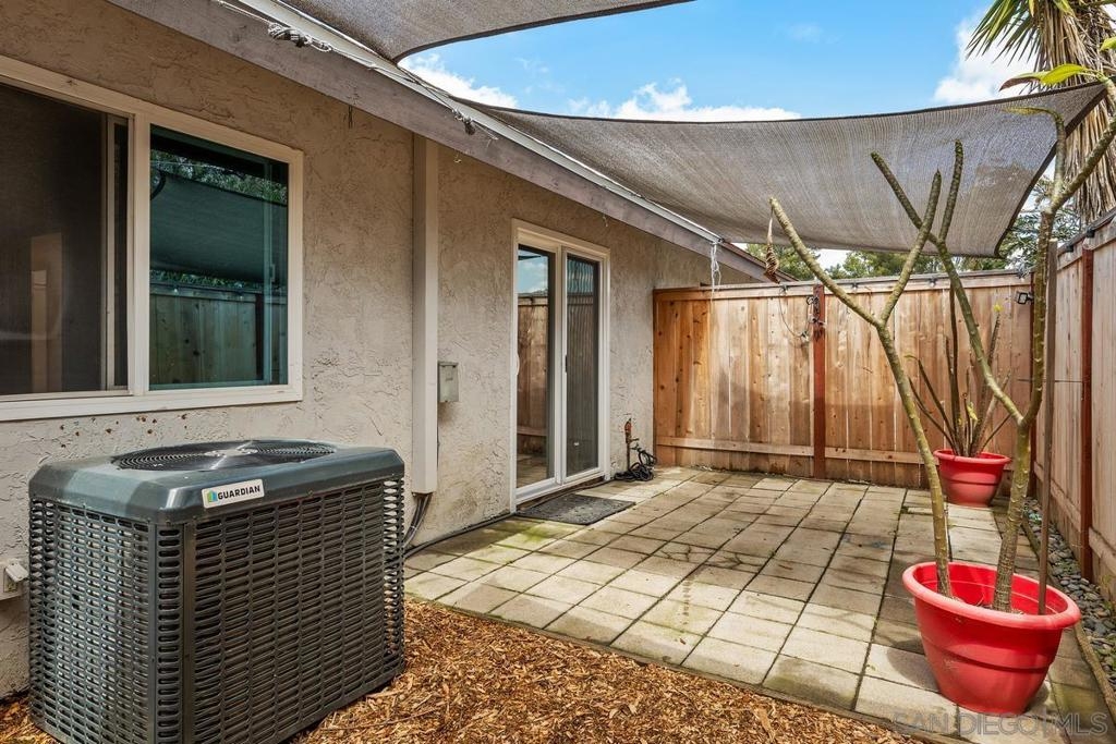 ACCEPTING BACK UP OFFERS. Charming, open and light FULLY UPDATED single story twin-home on a quiet Cul De Sac with 2 community pools, walking trails and parks, features vaulted ceilings, built in bookshelf, 2 sky lights, NEW ROOF, NEW AC, NEW FENCE, NEWLY REMODELED BATHROOMS, UPDATED KITCHEN with soft close doors & drawers, CUSTOM STAINED GLASS in dining room, NEW AUTOMATIC SMART GARAGE DOOR & opener, NEW VINYL WINDOWS AND SLIDING DOORS with LIFETIME WARRANTY, wood look laminate floors throughout w/new carpet in bedrooms & dual closets in Primary bedroom. Fully fenced, EZ care yard w/ 2 patio areas features cement pavers with pebble accents & established citrus trees. Laundry in garage with built in storage, work bench, and 2 pull down ladders for easy attic storage access. Feels like the country, yet close to shopping and freeways. Walking distance to Elementary, Middle and High Schools.