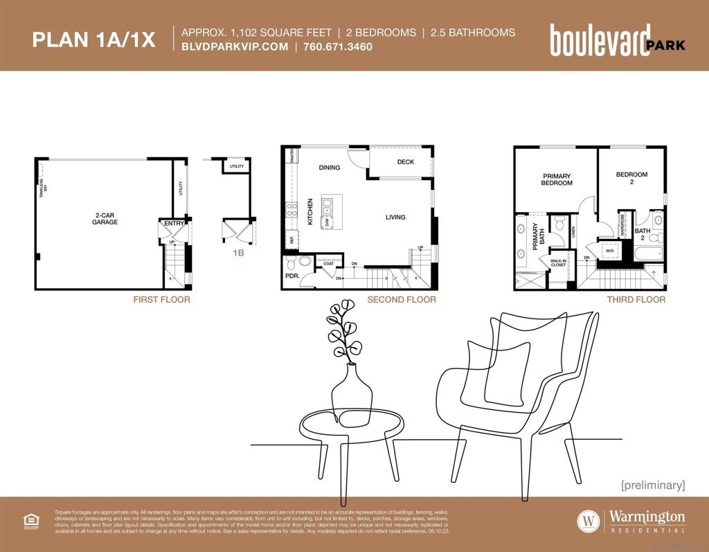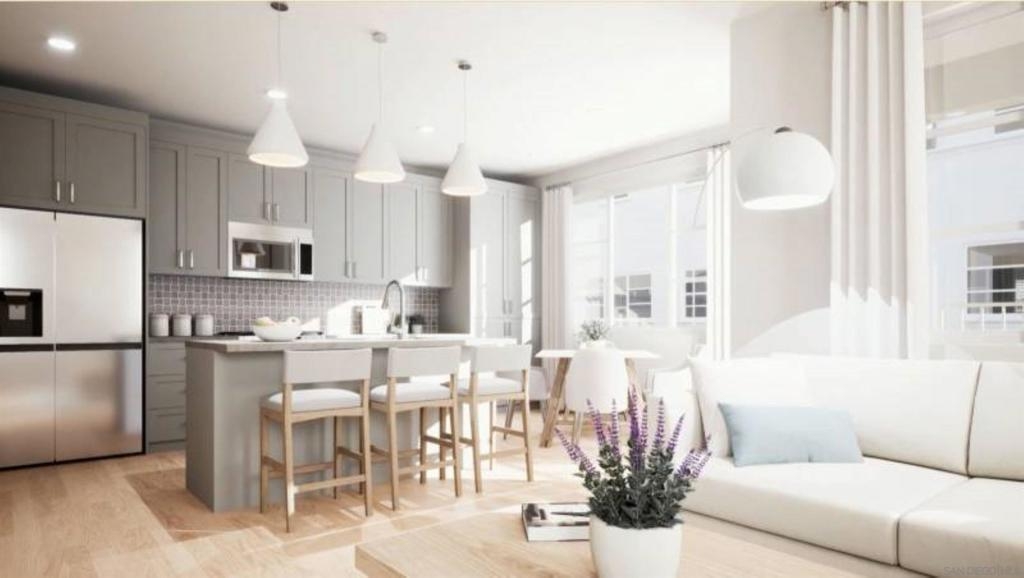 Brand new construction in Escondido! 2-bedroom 2 ½-bath, 3-level townhome with attached 2-car garage! This modern, luxurious 3-story townhome offers large windows, 9' ceilings, energy efficiency…a great starter home. Stainless steel LG appliances are included, featuring a 5-burner gas range, microwave/hood & dishwasher. Step upstairs to the top floor, and find a comfortable primary bedroom with walk-in-closet and bathroom with double sinks. The secondary bedroom has an ensuite bathroom. There is a laundry area with space for a stacked washer/dryer. Many modern conveniences are also included, such as the Ring video doorbell, "smart" thermostats, "smart" switches. This home is under construction, some upgrades included but buyer may still select some finishes for a limited time! Anticipated completion is October 2024.