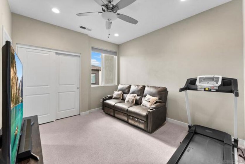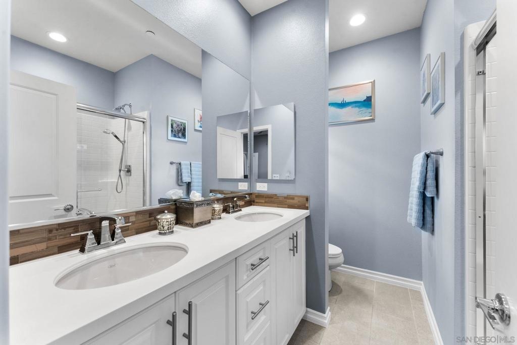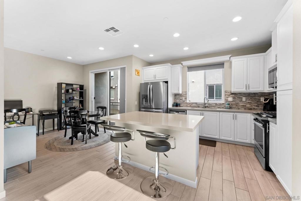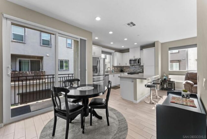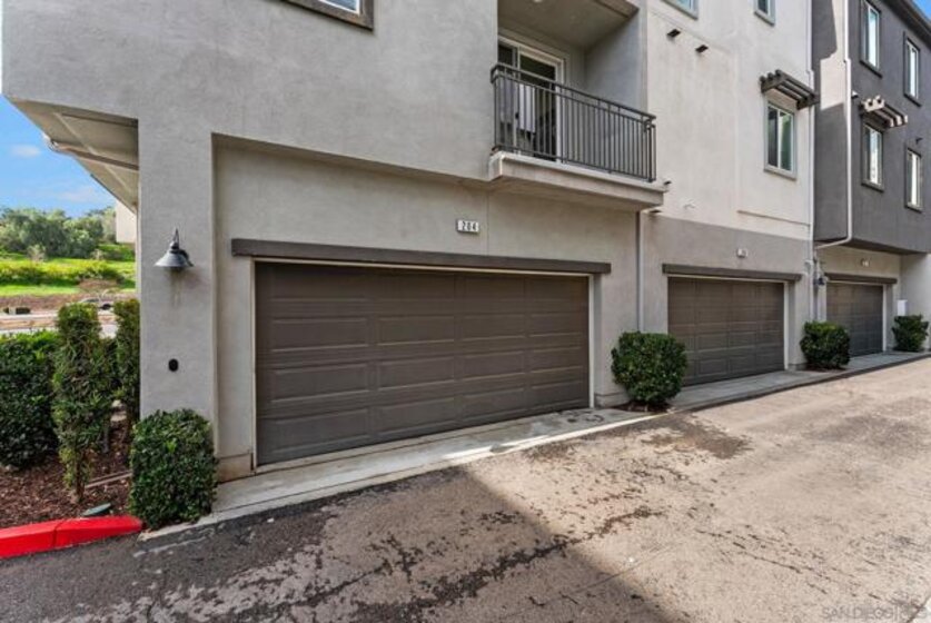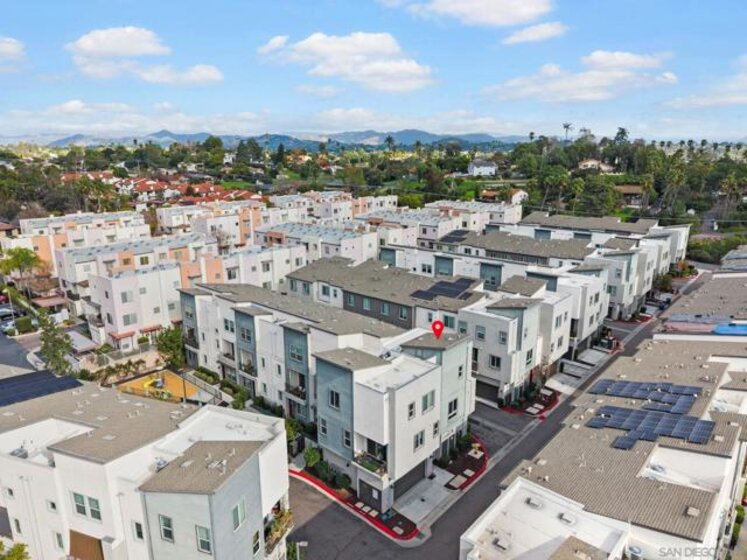 Welcome to your modern highly sought-after Citron community. This stunning 2-bed, 2.5-bath townhouse, built in 2018, showcases clean modern architecture, contemporary finishes, and an inviting atmosphere across 1,130 sq. ft. of thoughtfully designed living space. The bright, corner unit, and open-concept layout is enhanced by recessed LED lighting with upgraded porcelain flooring through the entry, kitchen, and baths, while plush carpet in the living room and bedrooms for warmth and comfort. The chef’s kitchen features stainless steel appliances, bright white cabinetry with brushed nickel hardware, quartz countertops, and a stylish tile backsplash. Enjoy the spacious living area or step out onto the balcony - perfect for morning coffee or evening relaxation. Both bedrooms offer comfort and privacy. The primary suite includes a walk-in closet and en-suite bath with white cabinetry and white counters. The secondary bedroom also features its own full bath, ideal for guests, children, or a home office. Additional highlights include tankless water heater, NEW HVAC, direct-access 2-car garage parking with plenty of overhead storage and access to community amenities such as a dog run, sitting areas, playground, and BBQ areas. Located in desirable South Escondido, you’re just minutes from freeways, parks, dining, and shopping. Low HOA and **NO MELLO ROOS.** Corner unit, one of the best locations in the complex, Close to Trader Joe's, Sprouts, Jimbos, Kit Carson Park, Escondido mall, golf courses, hiking trails, bike trails, local gyms, 24-hour fitness, and prime location to freeway access.