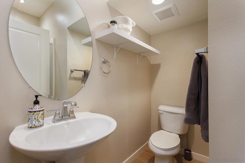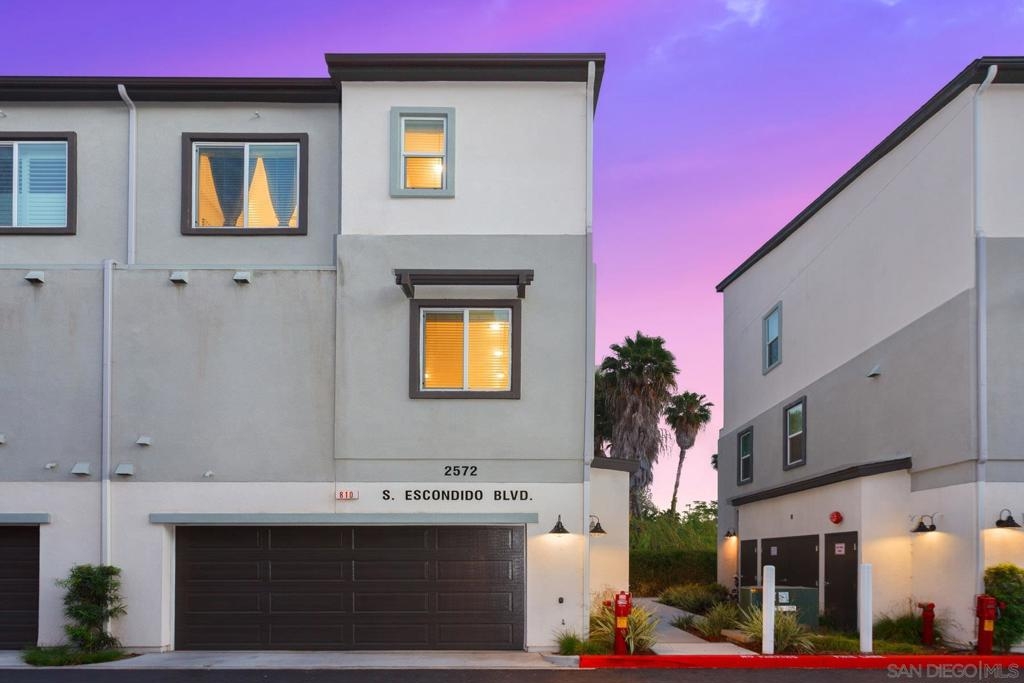 Rare upgraded corner unit tri-level townhome located in the Citron community! Newer and modern move-in ready home is in immaculate condition and well maintained. Only sharing one wall so the home has tons of natural light. 3 bedrooms & 3 full baths with an additional powder bath on the second level. Bedroom on the entry level has its own full bath. This home boasts porcelain flooring in the main living area, quartz counters, custom backsplash, private balcony, tankless water heater, dual-pane windows, and large laundry room. Recessed lighting throughout and open kitchen concept with plenty of storage. Enjoy the ample sized private master bedroom suite paired with a walk in closet. Direct access to an attached 2 car garage with pre-wired 220V EV charging. One of the best units in the complex. Prime location in south Escondido, close to freeways, parks, and shopping. The Citron community has a dog park, community sitting, playground for kids, and BBQ areas to entertain guests. Newer construction by the famous William Lyons. Convenient location. Low HOA and NO Melloroos. One of the few Plan 3 models that share only one wall. Close to downtown Escondido, Trader Joes, Kit Carson park, Hodges golf center, and the mall. Equipment: Garage Door Opener, Range/Oven Sewer: Sewer Connected Topography: LL Guest House Est. SQFT: 63