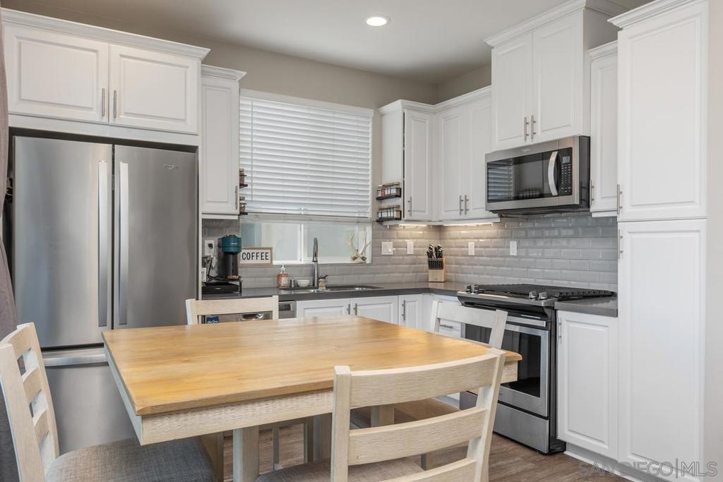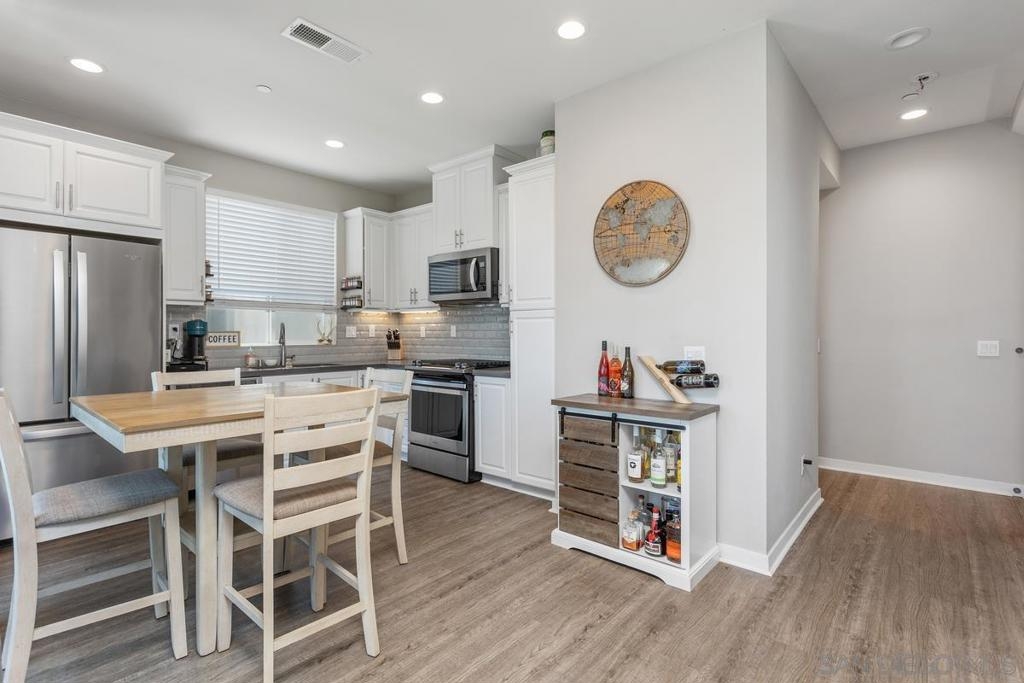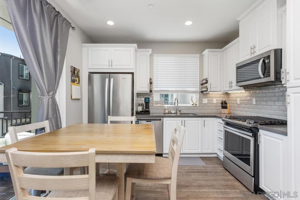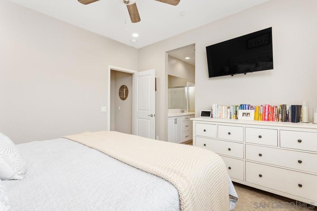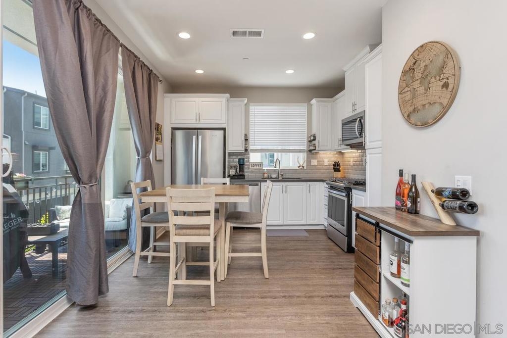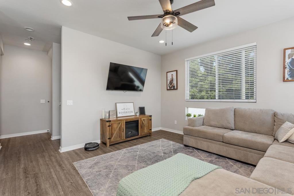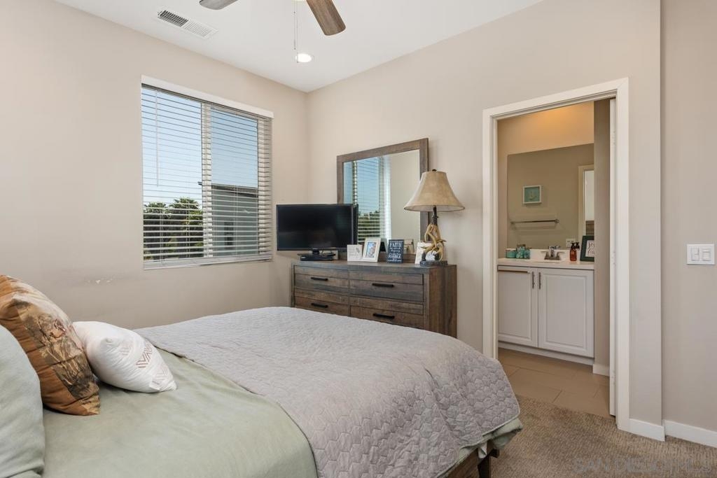 Welcome to your modern oasis in the highly sought-after Citron community! This stunning 2 bed, 2.5 bath townhouse built in 2019 boasts modern architecture with a contemporary vibe and an inviting atmosphere spread across 1,155 square feet of meticulously designed living space. The bright open-concept layout is accentuated by recessed LED can lighting, complementing the sleek luxury vinyl plank flooring that graces the entryway, kitchen, and bathrooms. Plush carpeting in the living room and bedrooms adds warmth and comfort to your daily retreat. The kitchen is a chef's dream, featuring stainless steel appliances, bright white cabinets adorned with brushed nickel hardware, quartz countertops, and a stylish tile backsplash. Relax and unwind in the spacious living area, or step outside onto the balcony to enjoy your morning coffee or evening cocktail. Retreat to the two bedrooms, each offering ample space and comfort. The master bedroom boasts a walk-in closet and an en-suite bathroom with white cabinets and a white matte cultured marble countertop. The second bedroom is perfect for little ones, guests or a home office and even has its own bathroom as well. Convenience is key with your direct access 2-car garage, but the perks don't end there! This townhouse is part of a vibrant community offering amenities such as a dog run, community sitting area, playground for kids, and BBQ areas for entertaining guests. Located in a prime spot in south Escondido, you'll enjoy easy access to freeways, parks, and shopping, making every day a breeze. Welcome home!
