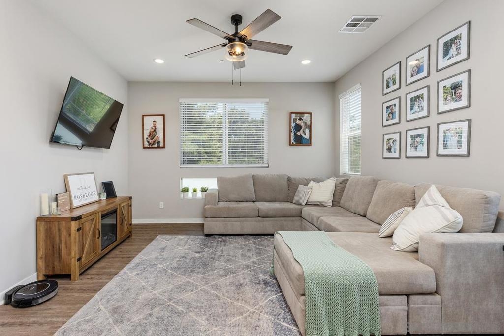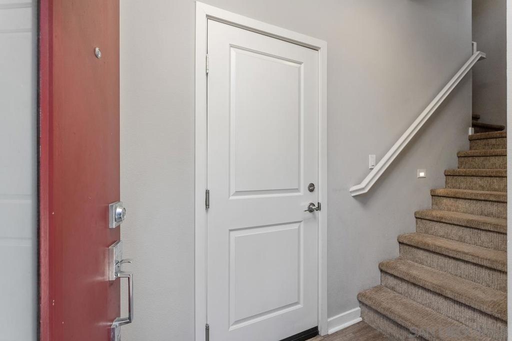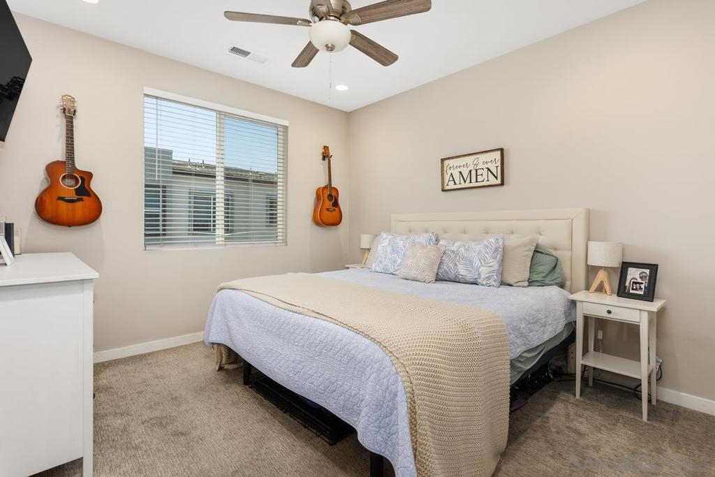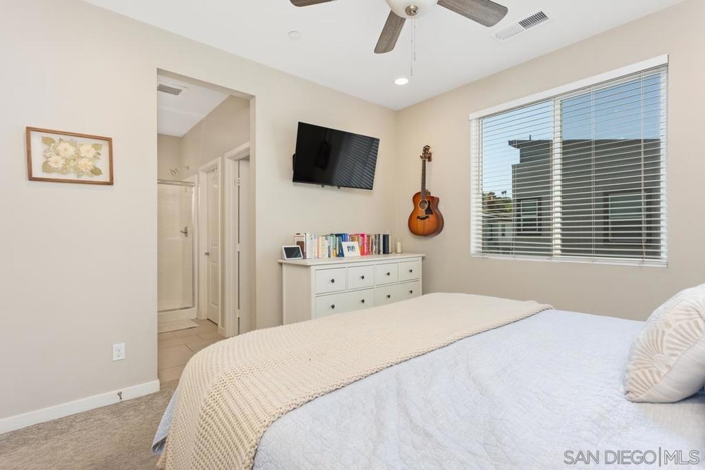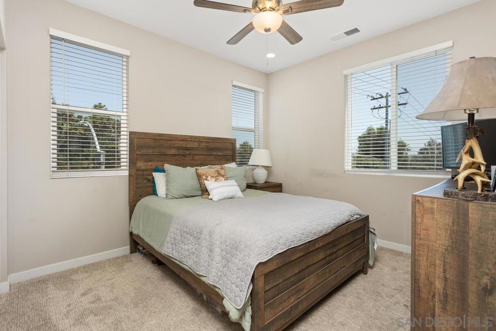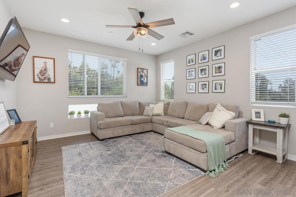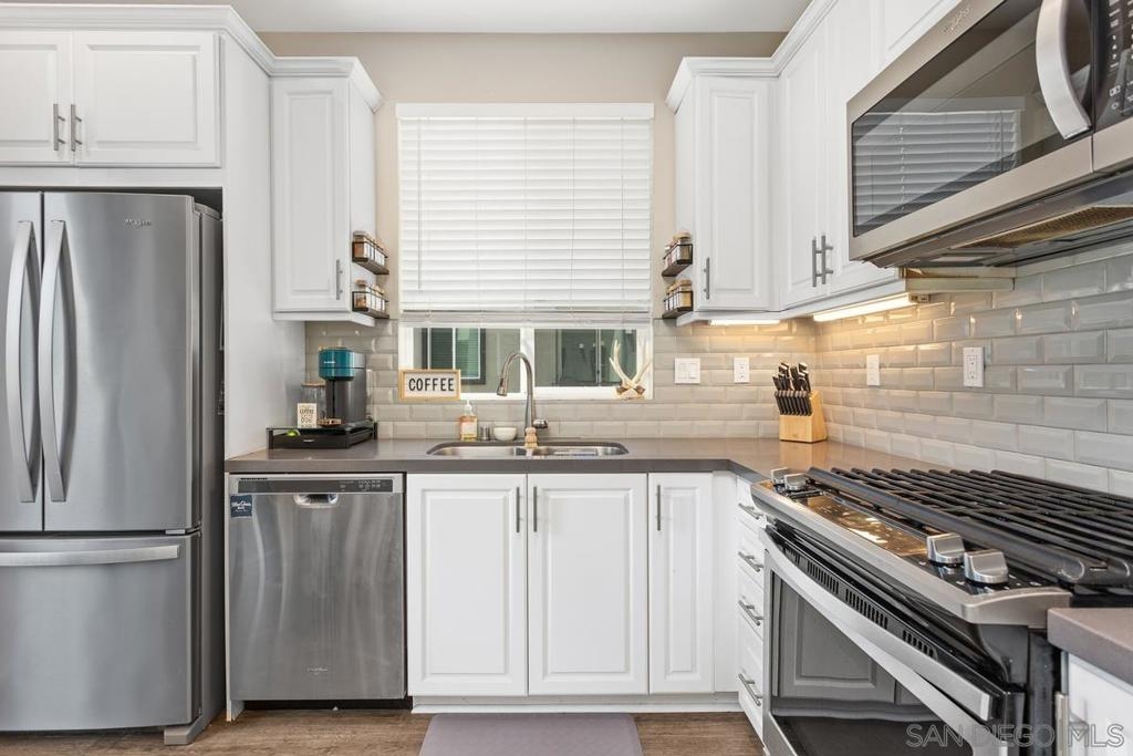 Welcome to your modern oasis in the highly sought-after Citron community! This stunning 2 bed, 2.5 bath townhouse built in 2019 boasts modern architecture with a contemporary vibe and an inviting atmosphere spread across 1,155 square feet of meticulously designed living space. The bright open-concept layout is accentuated by recessed LED can lighting, complementing the sleek luxury vinyl plank flooring that graces the entryway, kitchen, and bathrooms. Plush carpeting in the living room and bedrooms adds warmth and comfort to your daily retreat. The kitchen is a chef's dream, featuring stainless steel appliances, bright white cabinets adorned with brushed nickel hardware, quartz countertops, and a stylish tile backsplash. Relax and unwind in the spacious living area, or step outside onto the balcony to enjoy your morning coffee or evening cocktail. Retreat to the two bedrooms, each offering ample space and comfort. The master bedroom boasts a walk-in closet and an en-suite bathroom with white cabinets and a white matte cultured marble countertop. The second bedroom is perfect for little ones, guests or a home office and even has its own bathroom as well. Convenience is key with your direct access 2-car garage, but the perks don't end there! This townhouse is part of a vibrant community offering amenities such as a dog run, community sitting area, playground for kids, and BBQ areas for entertaining guests. Located in a prime spot in south Escondido, you'll enjoy easy access to freeways, parks, and shopping, making every day a breeze. Welcome home!