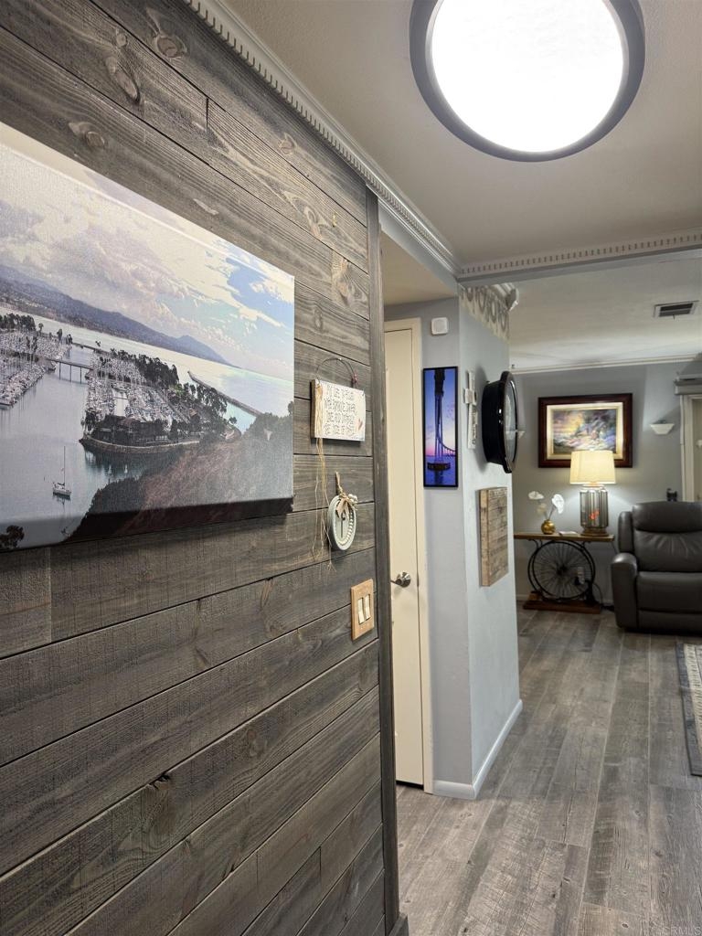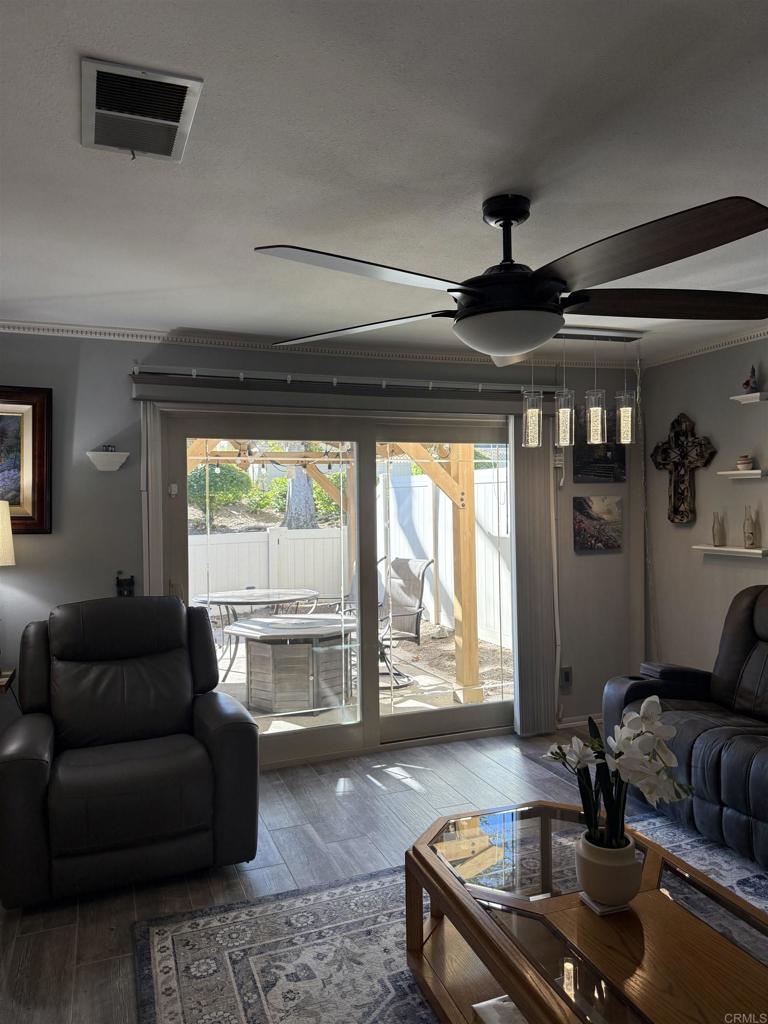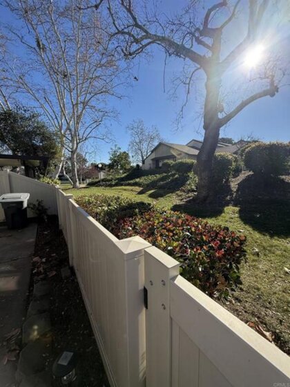 Standby for professional photos! Priced competitively! But don't miss this weekend's open house and see it with your own eyes. This home wants YOU! An outstanding opportunity for first time home buyers, those downsizing, or small families, this townhome combines modern updates with a tranquil, natural setting. and offers comfort and a vibrant community with convenient access to numerous local attractions. A two-story that spans 1,208 square feet, features three bedrooms and one-and-a-half baths. Upon entering, you'll notice a striking feature wall that sets the tone of the home. A main level bedroom, provides flexibility for use as a guest room, office, or personal retreat. The common living areas are tastefully updated with ceramic tile flooring that looks like antique gray hardwood, ensuring both durability and style. The kitchen is updated with quartz countertops and new cabinetry, a no-fingerprints Samsung refrigerator, complemented by the ceramic tile flooring that unifies the area's modern look. The bathrooms are also updated, and sophisticated recessed and enhanced lighting brightens the staircase and other areas of the home. The property extends its living space outdoors with a private back patio. Here, a cedar gazebo with steel hip roof creates an ideal setting for entertaining or relaxation. The home backs onto a luscious greenbelt that provides a serene setting, distant from other homes, and easy access to one of two community pools. Practical enhancements include a garage equipped with an EV charging station, air compressor, and an outdoor outlet on a timer. Ring cameras and entry alert system and a secondary security provide multiple ways to monitor the property. The one car garage is accompanied by two additional parking spaces in front of the townhome. Noteworthy is the roof replacement in 2019, and the home is equipped with leased solar panels, paving the way for energy efficiency. The community is surrounded by mature maple trees and expansive parklike greenbelts. Residents enjoy two community pools and playground. The community's location is perfect, with proximity to all your local amenities, with over a dozen wineries and the California Center for the Arts just minutes away. Commuters will appreciate quick access to major freeways like the 15 and 78, ensuring ease of travel whether heading into the heart of San Diego or exploring the greater area. Even with its easy access to urban conveniences, the community maintains a peaceful, park-like setting, offering a welcome respite from the hustle and bustle. Whether you're a first-time homebuyer, a small family looking to settle in a welcoming community, or someone seeking to downsize without compromising on amenities, this property is the perfect fit. Easy to show! Come make it your own!