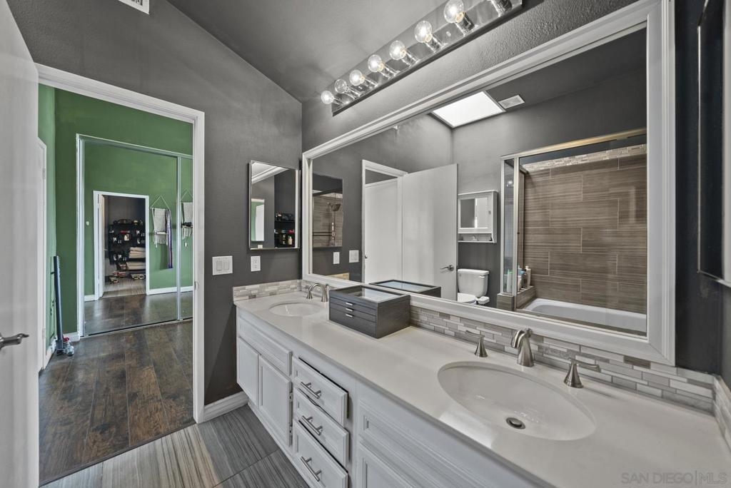 Discover your perfect retreat in Escondido! This home offers 2 spacious bedrooms to go along with 2.5 bathrooms offering a blend of comfort and style. The 2nd bedroom hosts it's own bathroom with a private balcony while the primary bedroom offers it's own private duel sink bathroom with a skylight. Inviting hardwood floors take you throughout the home, and with a spacious living room offering natural light and cathedral vaulted ceilings, this home creates a warm and welcoming ambiance. This home offers a 2 car garage with guest parking right across the front door. The kitchen offers stainless steel appliances with granite counter tops and subway style backsplash. Across from the kitchen there is a walk in pantry with a laundry room. With the opportunity to own one of the few townhomes in San Diego with a private pool, this is your opportunity to have a mix of private retreat with affordability!