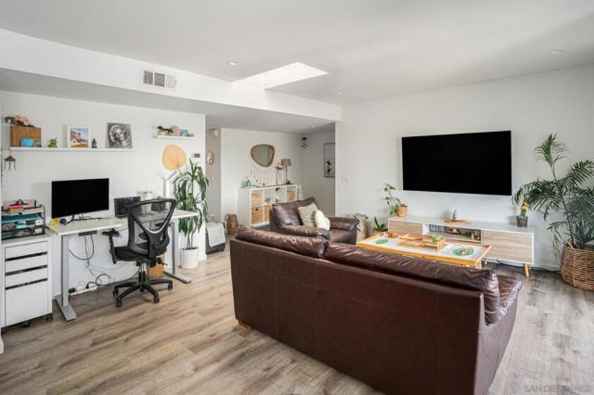 Welcome to this beautifully updated upper-level condo in the serene Bernardo Hills community—an ideal place to call home or a smart investment opportunity. Featuring 2 spacious bedrooms, 2 full bathrooms, and 1,004 sq ft of thoughtfully designed living space, this home blends comfort, function, and style. The bright, modern kitchen is a true highlight, showcasing rich dark wood cabinetry, sleek white quartz countertops, and a charming picture window framed by open glass shelving—perfect for displaying plants, books, or décor. Skylights and expansive windows fill the home with natural light while offering panoramic views that enhance its airy, elevated feel. The open-concept layout creates seamless indoor-outdoor living, extending to two private balconies—perfect for morning coffee or evening relaxation. The spacious primary suite features a full bath and beautifully designed custom closets for added organization and a touch of luxury. A second bedroom and a dedicated workspace nook provide flexible options for guests, remote work, or study. Located in a peaceful, well-maintained community with access to a sparkling pool, and close to shops, dining, parks, and major freeways, this turnkey home is one you don’t want to miss.