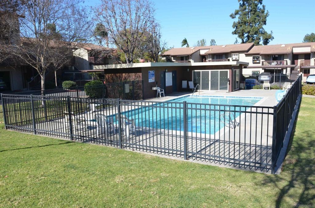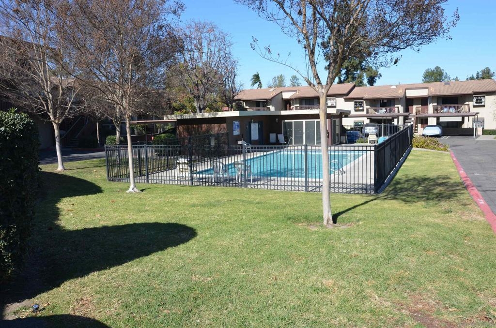 EXCELLENT OPPORTUNITY! Beautiful single level, 2 bedroom, 2 bath condo. Step inside this light & bright home. Freshly painted from the baseboards to the ceilings in soothing Greek Villa white. Nice tile throughout-no dingy dusty carpet here. The kitchen features custom cabinets, granite countertops, recessed lighting, nice appliances & a plethora of cabinet storage space. Both baths feature tile flooring & granite countertops. The primary bath has dual vanity sinks and a convenient walk in shower. You'll enjoy the in unit laundry/central air conditioning and heat. Both bedrooms are large with plenty of closet space making this home perfect for families or roommates. A huge bonus for this ground floor condo is you have a nice front patio & a fenced rear yard, perfect for entertaining or pets. The complex is conventional, FHA & VA approved, making it a great opportunity for all to own. Enjoy the community pool on warm summer days. Conveniently located near shopping, restaurants, parks, medical facilities & freeways. The perfect blend of comfort, convenience & affordability. Come & see this lovely condo today! Some photos feature virtual staging.