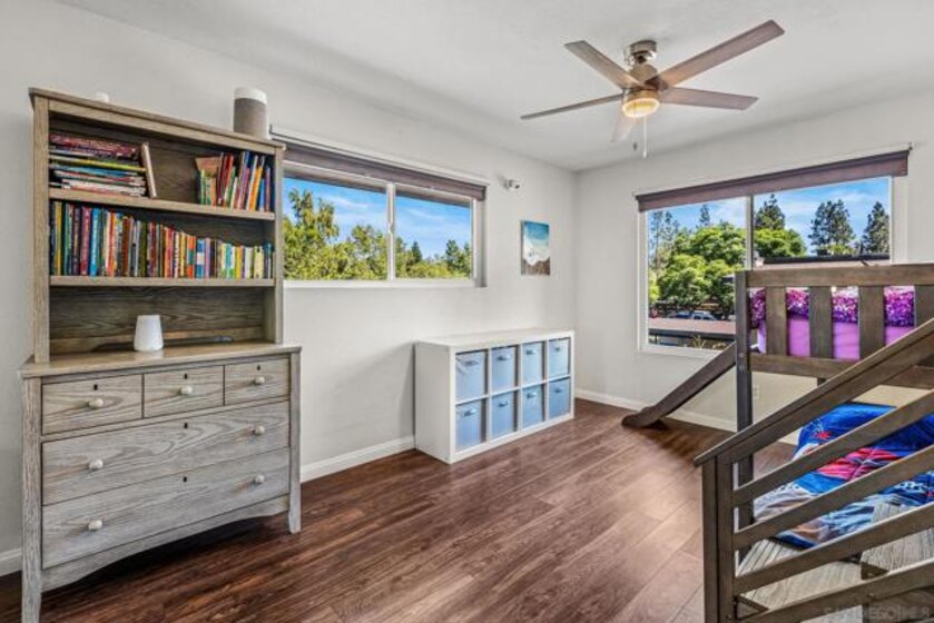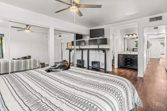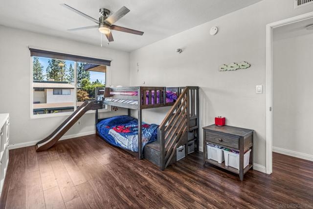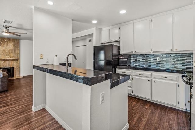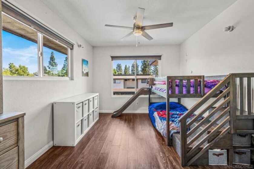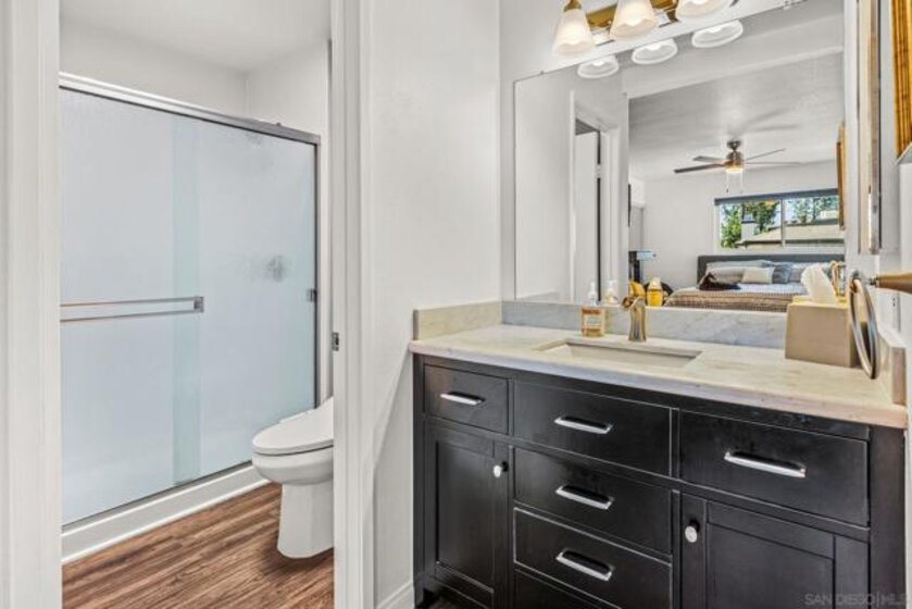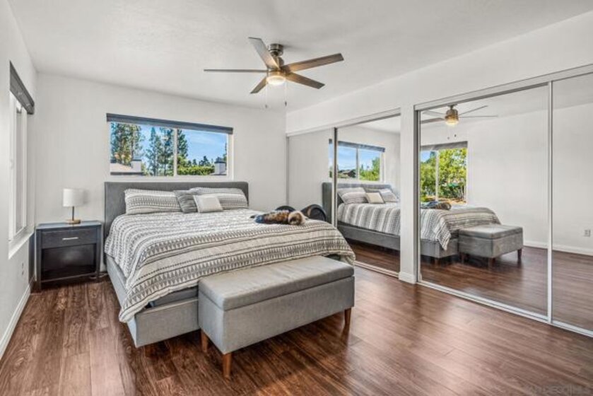 Beautifully updated end unit in a prime South Escondido location. This bright & spacious upstairs home shines with style and value, priced to sell offering the lowest price per square foot for a 2 bedroom 2 bath in the area. Enjoy the convenience of an HOA that covers water, gas for hot water, trash, and sewer, plus access to fantastic community amenities including a pool, spa, tennis and pickleball courts, basketball court, and gated entry. The HOA has also recently replaced the roof & skylights, providing added peace of mind. Inside, you’ll find a beautifully maintained home filled with natural light featuring dual pane windows with accordion blinds, updated hard surface flooring, fresh paint, & a wood burning fireplace with marble surround. Both bathrooms have been thoughtfully upgraded with marble vanities, a remodeled primary shower, and modern fixtures. The kitchen offers a clean, contemporary feel with marble countertops, subway tile backsplash, recessed lighting, built in microwave, and all appliances included. Smart home features such as a smart thermostat and video doorbell add comfort and convenience. Both bedrooms are generously sized, with the primary suite offering double closets. You’ll love the private patio which also includes a large storage closet with full sized washer & dryer. Parking is easy with two dedicated spaces right in front, one covered with a storage cabinet, plus plenty of guest parking. A pedestrian gate provides direct access to the nearby shopping center, and you’ll appreciate being close to Trader Joe’s, dining & convenient freeway access
