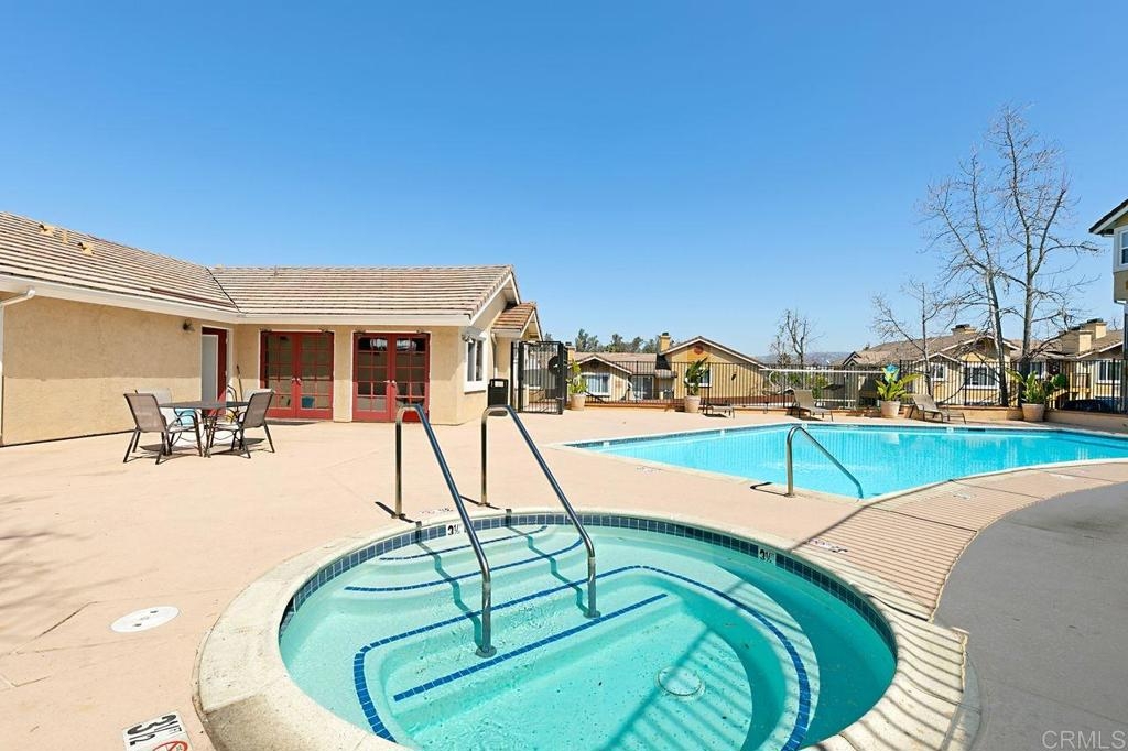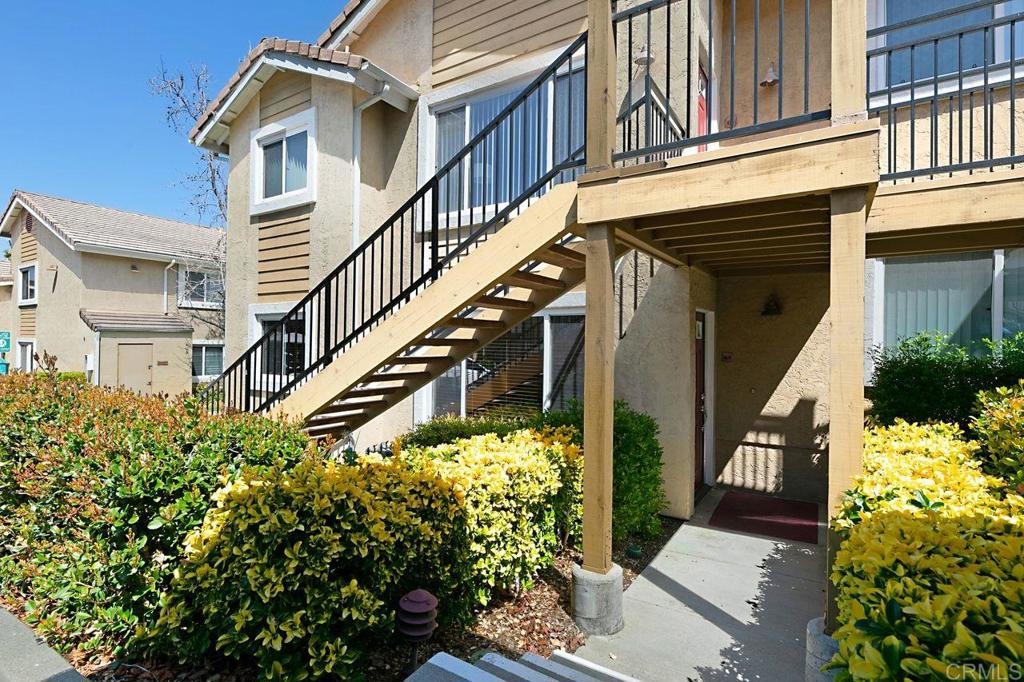 Wonderful 3BR/2BA condo located in the VA-approved complex of The Heritage at Canyon Ponte. This is a one-story unit on the ground floor located directly across from the community amenities for only $349,900! It's been beautifully updated with rich laminate wood flooring, granite counter-tops with bar seating, SS appliances, pull out drawers in pantry, 4" baseboards, horizontal faux-wood blinds and has a handsome brick fireplace & A/C. The primary suite and one of the secondary bedrooms have very large closets and there is a full wall of storage cabinets in the hallway. The enclosed patio has a full-sized washer & dryer in the laundry closet. This complex features 2 pools, 2 jacuzzis, a clubhouse, BBQ grills, an exercise room/gym and a billiards room. The HOA fee includes: water, sewer, trash, exterior/roof/common area maintenance and exterior termite (Buyer/Buyer's Agent to verify). There is a covered parking space nearby, which is assigned to this unit, plus plenty of guest parking throughout the complex. This home is conveniently located near large commercial retailers for quick & easy shopping and only a mile from downtown Escondido. Enjoy nearby activities such as golfing, hiking, fishing and wine tasting or spend the entire day at the world famous San Diego Zoo Safari Park marveling at all the cool creatures. Quick access to the 15 and 78 freeways, too. Dare to Dream... Then make it yours!