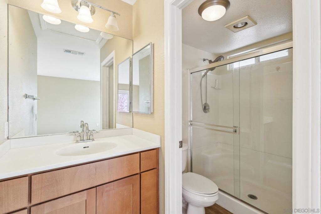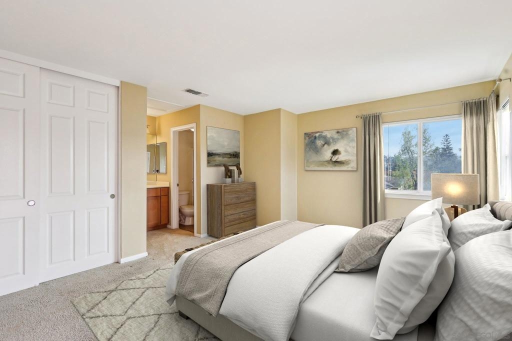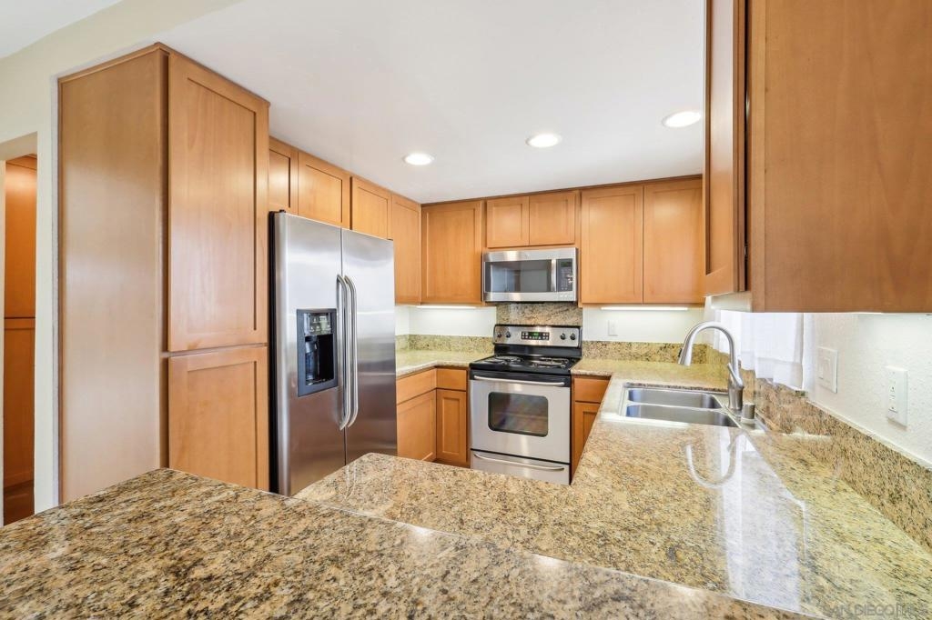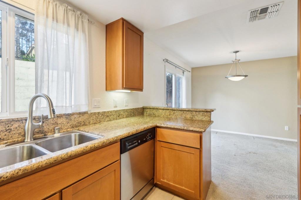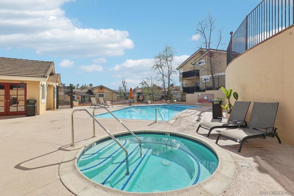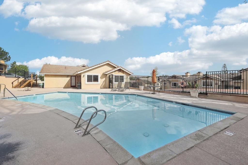 VA Approved and Move-In Ready! Tucked away in the desirable Heritage at Canyon Pointe community, this bright and spacious end-unit townhome offers comfort, convenience, and a touch of privacy with its own fenced yard and patio—perfect for relaxing or outdoor entertaining. Built in 2001, the home features an attached one-car garage plus an additional assigned parking space. Enter to discover a welcoming living room with a cozy gas fireplace. The kitchen is outfitted with granite countertops, stainless steel appliances, and warm wood cabinetry. Upstairs you'll find all three bedrooms, including a primary suite with its own private balcony and ensuite bath. The two secondary bedrooms share a full hallway bath. Full-size laundry is conveniently located in the garage—and the washer and dryer are included! Enjoy resort-style living with access to two sparkling pools and spas, a clubhouse with pool table, BBQ area, and a well-equipped gym. Ideally located close to shopping, dining, and major freeways, this home combines peaceful community living with urban accessibility.