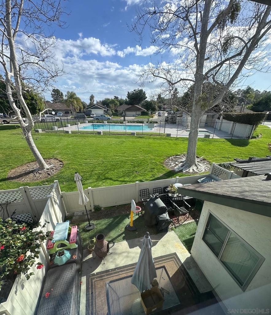 One of the best locations within the community. No neighbor behind. House-like townhome with a patio that directly accesses the green belt with playground, full-size pool and kiddy pool which are close, but not too close. Attached garage and 2 other private parking spaces (one is in front of the garage occupant says it is ok to park there) and laundry. Plus lots of guest parking in front nearby. Some recent upgrades. 1 bedroom down. If you saw the home prior to May 8, come see again, recent upgrades made.