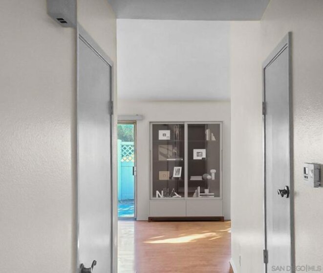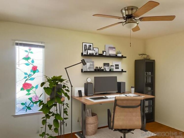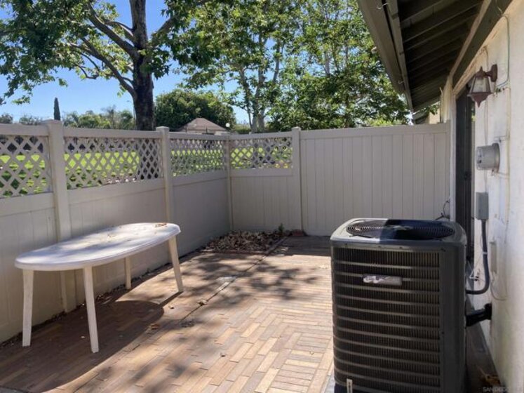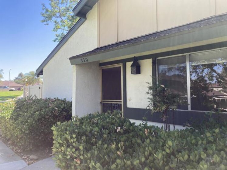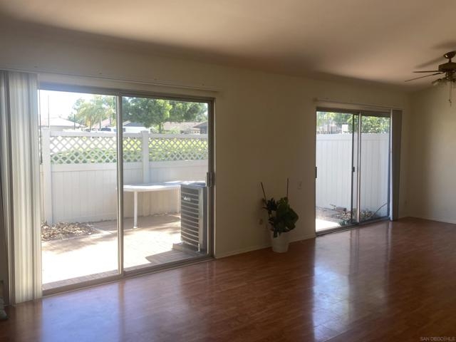 Woweee, a cozy country feeling with this semi-detached home. The Energy efficient HVAC system and heating ventilation air conditioning were installed in 2024 with value over $10,000 for comfort and assurance. Consistent and uniform laminate wood flooring throughout. Newer window blinds in each room to enhance privacy. Enjoy your private fenced-in backyard patio for relaxing, reading, BBQ events. Conveniently located minutes from the 15 Fwy., 78 Fwy. Your are surrounded by a park-like setting, truly a rare opportunity. Included is having a single garage with an electric door with a private driveway to park for guests or family members. Next to the driveway is a private driveway for additional parking for this home. This home is a stone's throw to the pool area. Back in your privately fenced patio, then cool down in the blue pool. Another feature that might help your needs is secured RV parking for a minimum fee per month when available. Your heart will be touched when you walk through it.