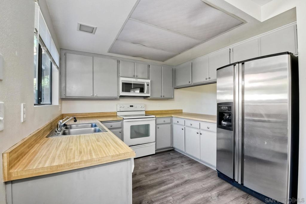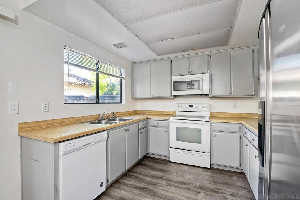 Escondido Historic District Vista Del Mundo single story condo. Very well maintained spacious open floor plan. No one above or below. New laminate flooring throughout, carpet bedrooms and tile baths. Updated kitchen appliances and cabinets. Updated bathrooms. Private back patio for nice quiet outdoor dining, entertaining or just relaxing. Steps away from the gated private community pool. 2 assigned parking spaces, one near by carport parking with storage unit, the other in other parking area. Plenty of visitor parking. Top of the hill complex with nice breezeways and well maintained common areas. Centrally located. Walking distance to downtown (Grand Ave) Escondido with all the shops, breweries, wine bars, and restaurants. Near city parks and highways. A very comfortable place to live. Complex Features: , Sewer: Sewer Connected Topography: LL
