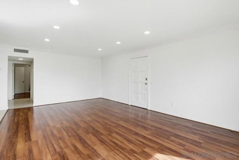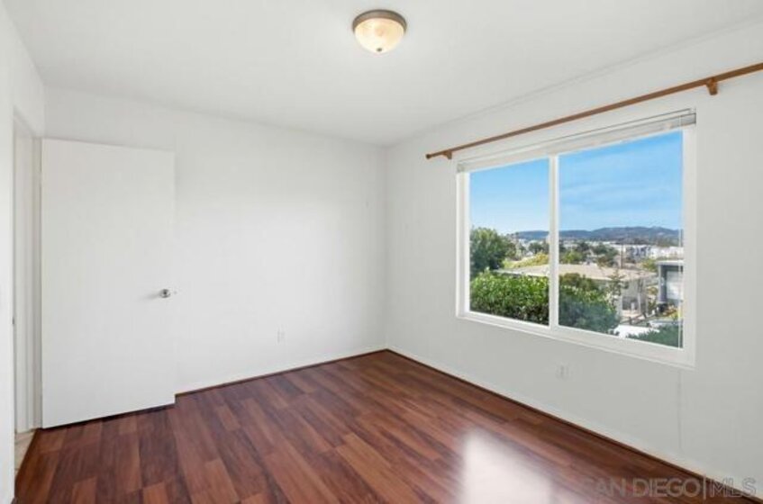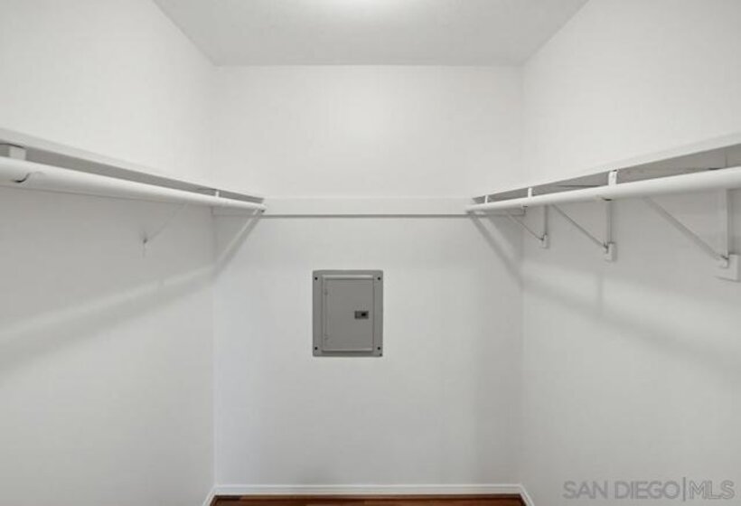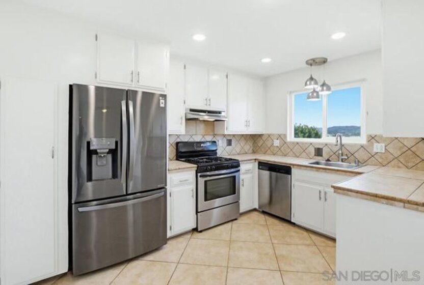 TURNKEY corner end-unit condo that lives like a townhome with only one adjoining wall. This single-story home sits elevated above the street, offering privacy and beautiful views from two separate decks. Inside, the open floor plan features wood flooring and double-pane sliding doors and windows that bring in natural light and provide easy access to outdoor living spaces. The layout flows comfortably between the living, dining, and kitchen areas—ideal for everyday living and entertaining. The kitchen includes a new refrigerator with water dispenser and unique round craft-ice balls. Both spacious bedrooms feature walk-in closets, providing generous storage. Additional highlights include forced heat and A/C, a private two-car garage, and low HOA dues that include water. Ideally located bordering the Old Escondido Historic District, this home offers charm, convenience, and easy access to shopping, dining, and local amenities. Move-in ready with privacy, views, and multiple outdoor spaces—this one is a must-see!... Patio storage closet off the dining room could potentially be plumbed for washer/dryer unit.