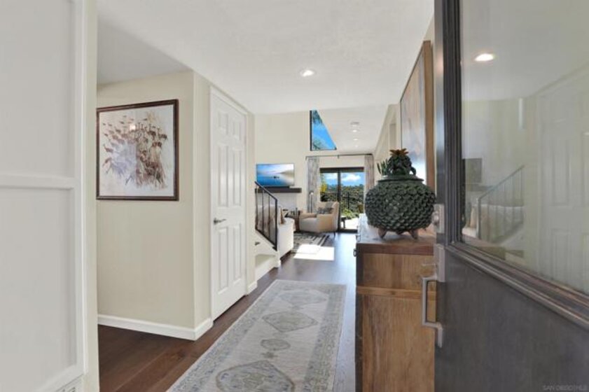 Experience luxury living where every detail has been thoughtfully curated for comfort & convenience. This fully remodeled townhome boasts engineered hardwood flooring, a beautifully redesigned kitchen & bathrooms, high-end finishes & recessed lighting. Additional upgrades include electric shades, new sliding glass doors, a whole-house fan & air conditioning for year-round comfort. The second level features a private balcony, perfect for enjoying your morning coffee or unwinding in the evening. The galley kitchen showcases sleek stainless steel appliances, quartz countertops & seamlessly flows into the dining area & living room. Step outside to the tranquil back patio, where pavers, lush landscaping & stunning views of the San Pasqual Valley create an ideal setting for entertaining or relaxation. Located in a sought-after gated community of Allegro, residents enjoy exclusive access to a sparkling pool, tennis courts & pickleball courts. Nestled in central Escondido, this home offers easy access to the North County shopping mall, Kit Carson park, San Diego Zoo Safari Park, Lake Hodges & scenic San Pasqual Trails. With a welcoming neighborhood and an unbeatable location, this home truly has it all. Don’t miss this incredible opportunity!