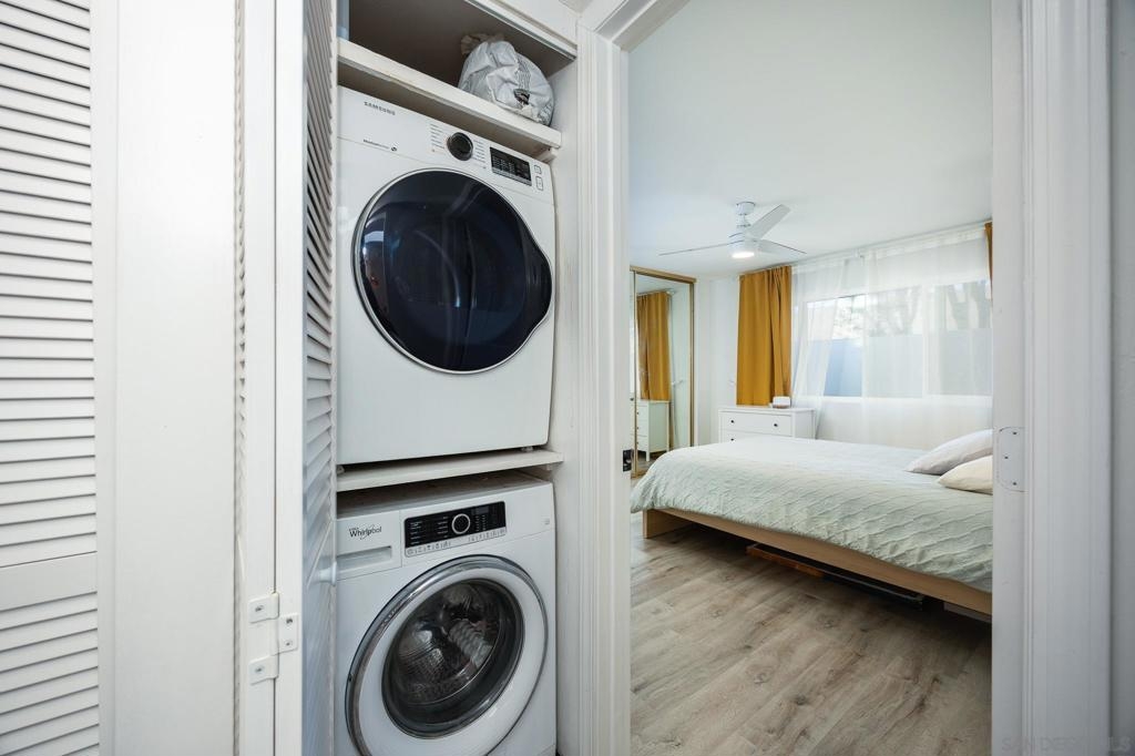 Welcome to 810 E Washington Unit E, a beautifully updated 2 bedroom, 2 bath condo with 1,064 sq ft of stylish living space. This is the best priced renovated two-bedroom home in all of Escondido, offering incredible value with thoughtful upgrades throughout. The kitchen has been tastefully remodeled with sleek marble countertops, modern cabinetry, and updated fixtures, while the home features new flooring and fresh paint for a move-in ready feel. Both bathrooms have been completely renovated, showcasing designer tile surrounds, elegant vanities with quartz counters, updated lighting, and modern fixtures that bring a spa-like touch to daily living. An in-unit washer and dryer provide added convenience. Step outside to your ultra-private outdoor patio, perfect for morning coffee, quiet relaxation, or entertaining friends. The property also includes garage parking with built-in storage and plenty of visitor parking. Meticulously maintained and move-in ready, this home is the perfect balance of style, comfort, and affordability in Escondido.