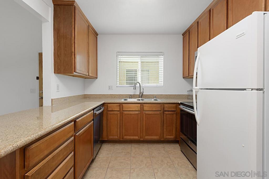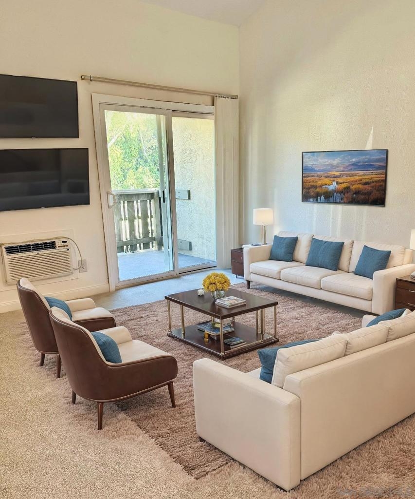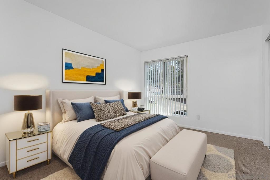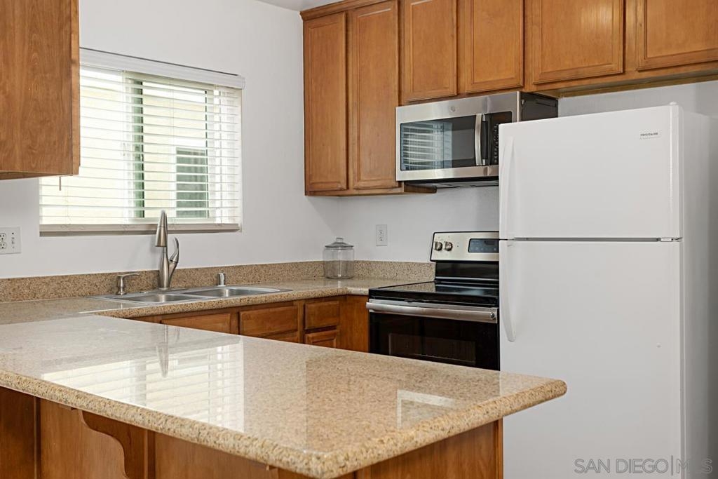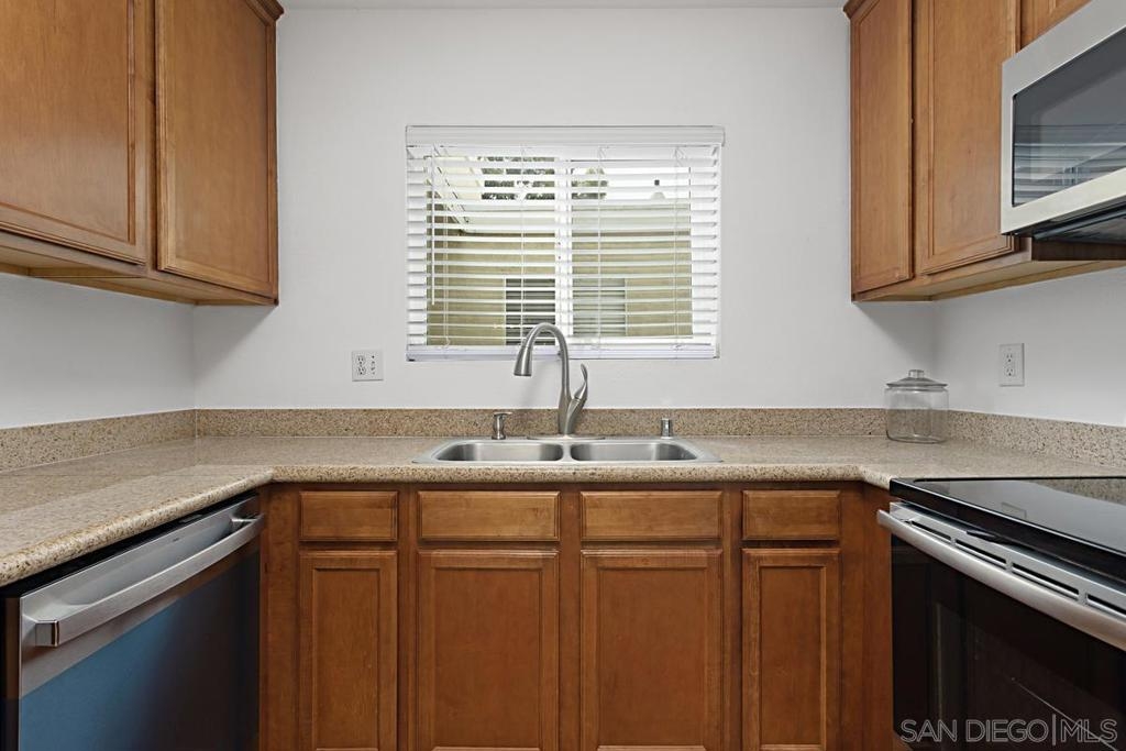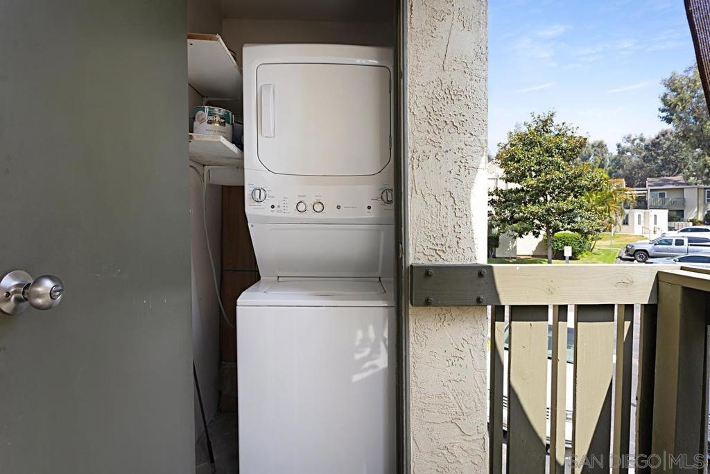 This second-floor, move-in ready property is a gem! It offers a charming 1-bedroom, 1-bath layout with new carpet, fresh paint and granite countertops in the kitchen. The unit includes a stackable washer and dryer, and is bathed in natural light. The living room features a vaulted ceiling and a sliding door that opens to a private balcony. You'll have one covered parking spot and a pass for an additional car. Situated in the gated Village Green Community, the amenities include a swimming pool, tennis court, exercise room, open grassy areas, and a playground. The HOA covers trash and water. With easy access to highways 78 and 15, this home is also close to Downtown Escondido. Plus, it's a VA-approved complex.