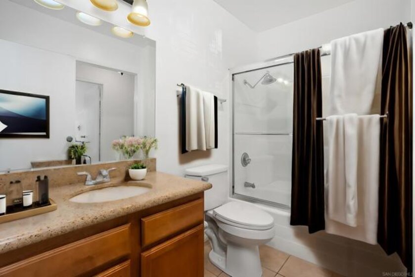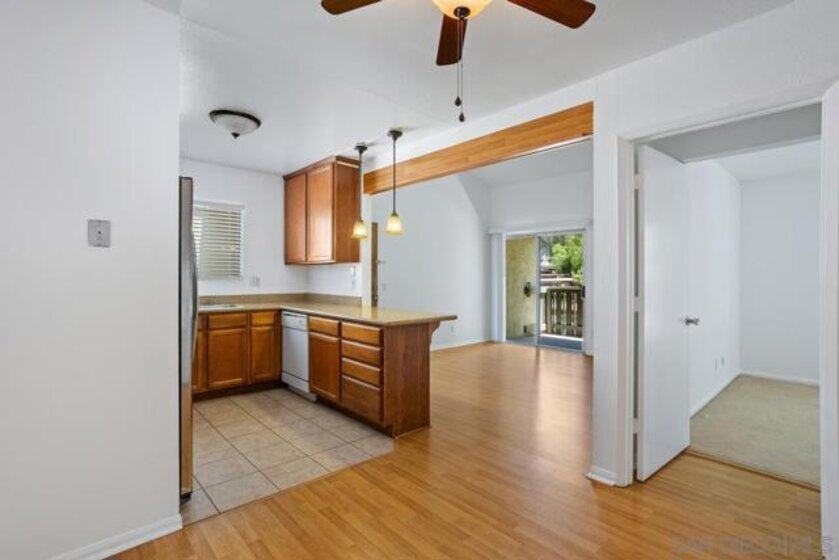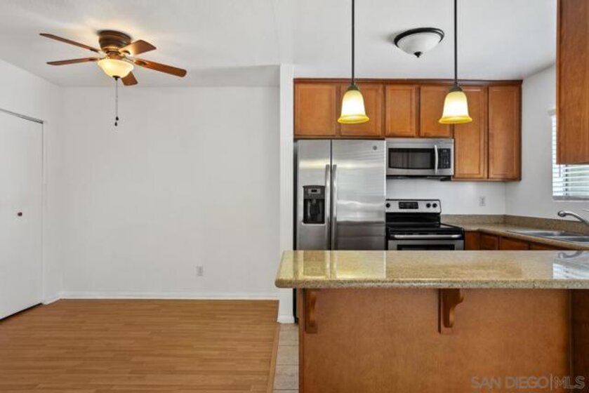 This second-floor, move-in ready property is a gem! It offers a charming 2-bedroom, 1-bath layout with fresh paint and granite countertops in the kitchen. The unit includes a stackable washer and dryer, and is bathed in natural light. The living room features a vaulted ceiling and a sliding door that opens to a private balcony. You'll have one covered parking spot and a pass for an additional car. Situated in the gated Village Green Community, the amenities include a swimming pool, tennis court, exercise room, open grassy areas, and a playground. The HOA covers trash and water. With easy access to highways 78 and 15, this home is also close to Downtown Escondido. Plus, it's a VA-approved complex.
