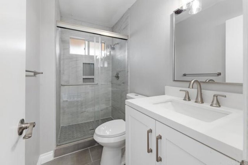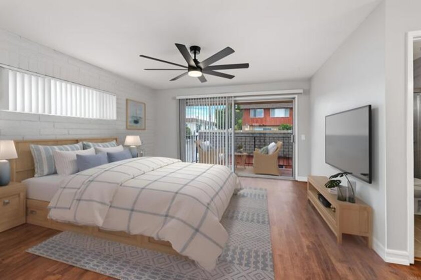 Discover this beautifully upgraded end-unit condo that lives like a detached home, set within a fully gated boutique community in the heart of Escondido. Thoughtfully remodeled throughout, this residence offers modern comfort, stylish finishes, and effortless living. Step inside to a bright, open layout featuring two spacious bedrooms—each with its own en-suite bath—plus a convenient half bath on the main level. The primary suite is a true retreat with newer plank vinyl flooring, a walk-in closet, and a brand-new 6-blade ceiling fan with remote LED lighting. The stunning primary bath showcases a custom walk-in tile shower, dual new vanities with quartz countertops, updated sinks, faucets, mirrors, lighting, and a new toilet. The secondary bedroom also impresses with stunning easterly panoramic views, a newer ceiling fan, mirrored closet doors, and a refreshed en-suite bath featuring a new vanity with quartz countertop, updated fixtures, lighting, and a new toilet. The inviting living room offers rich wood flooring and a cozy fireplace with a new mantle. The upgraded kitchen shines with granite countertops, shiplap backsplash, recessed lighting, stainless steel appliances—including a new range and microwave—plus a new reverse osmosis system. Just off the kitchen, you’ll find the indoor laundry area and a stylish half bath. Additional features include central heating and air, newer hot water heater, recent whole-house repipe, laundry room with full-size, side-by-side washer and dryer and fresh interior paint throughout. Enjoy two spacious outdoor spaces: a patio off the dining room with easy access to the sparkling community pool, and a large upstairs balcony off the primary suite—perfect for morning coffee and a book. Two gated, assigned parking garage parking spaces complete the package. Located close to premier shopping, dining, and entertainment, this well-maintained community offers peace of mind with an HOA that covers water, trash, roof, and common-area maintenance. Relax by the pool or unwind in the shared rooftop view area—this is Escondido living at its best.